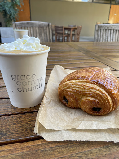 Read moreThe coffee shop is tucked away on the church grounds towards the middle of the campus. It's a lovely spot to sit and enjoy your coffee. There are a couple of tables on the inside, a barstool seating area, and two leather chairs. The outside has plenty of large wooden tables with umbrellas for shade and a few smaller tables along the windows. The staff is really friendly. I had a vanilla latte and a blueberry muffin, both were excellent. I always appreciate the touch of pretty designs to the coffee as well. It was my first time here. I needed to run my mother to the hospital for her appointment, but I'll...