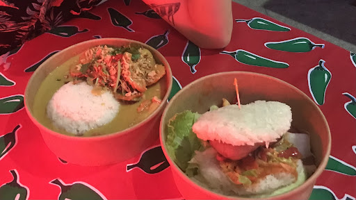 Sticky rice burger - also delicious just not on the same level as the curry. 8:30 on Saturday and they were sold out of papaya salad so substituted...