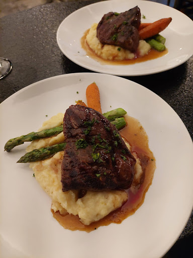 Being a hotel resto, parking is very costly (hotel rates apply) or if you're lucky, off street, but close to the airport so keep that in mind.