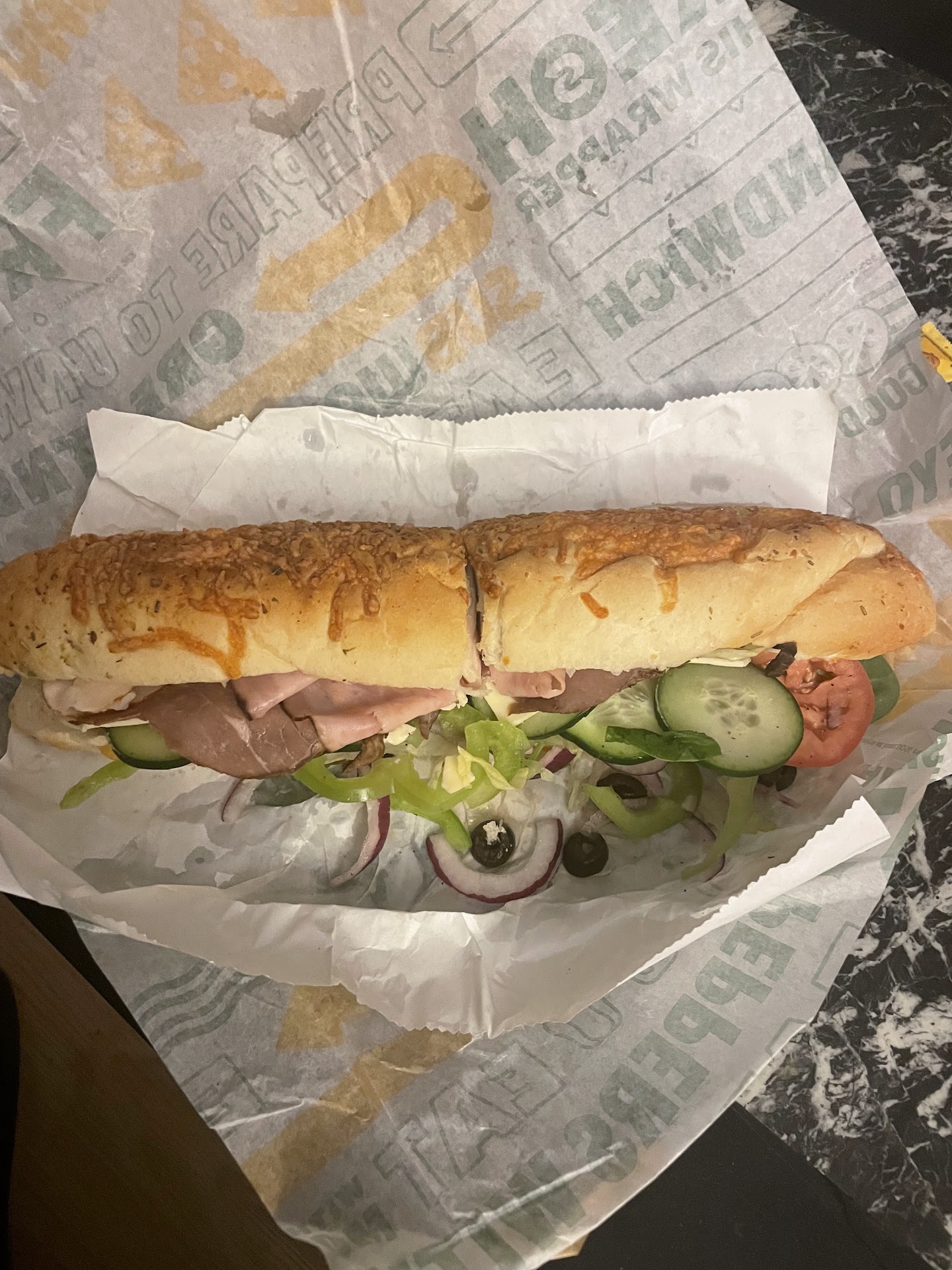 I asked her to "de-bread" the footlong, she asked me "cheese" I responded with "american". She then began to put the bread into the oven like someone said "toasted". So I laughed and said "de-breaded not toasted" and she stopped. Asked her if she was having a bad night and instantly snapped back with "no, just didn't hear you". How could that be possible? Got other stuff on your mind? Like whatever you're going through? Leave that at home, it's simple we all do it.