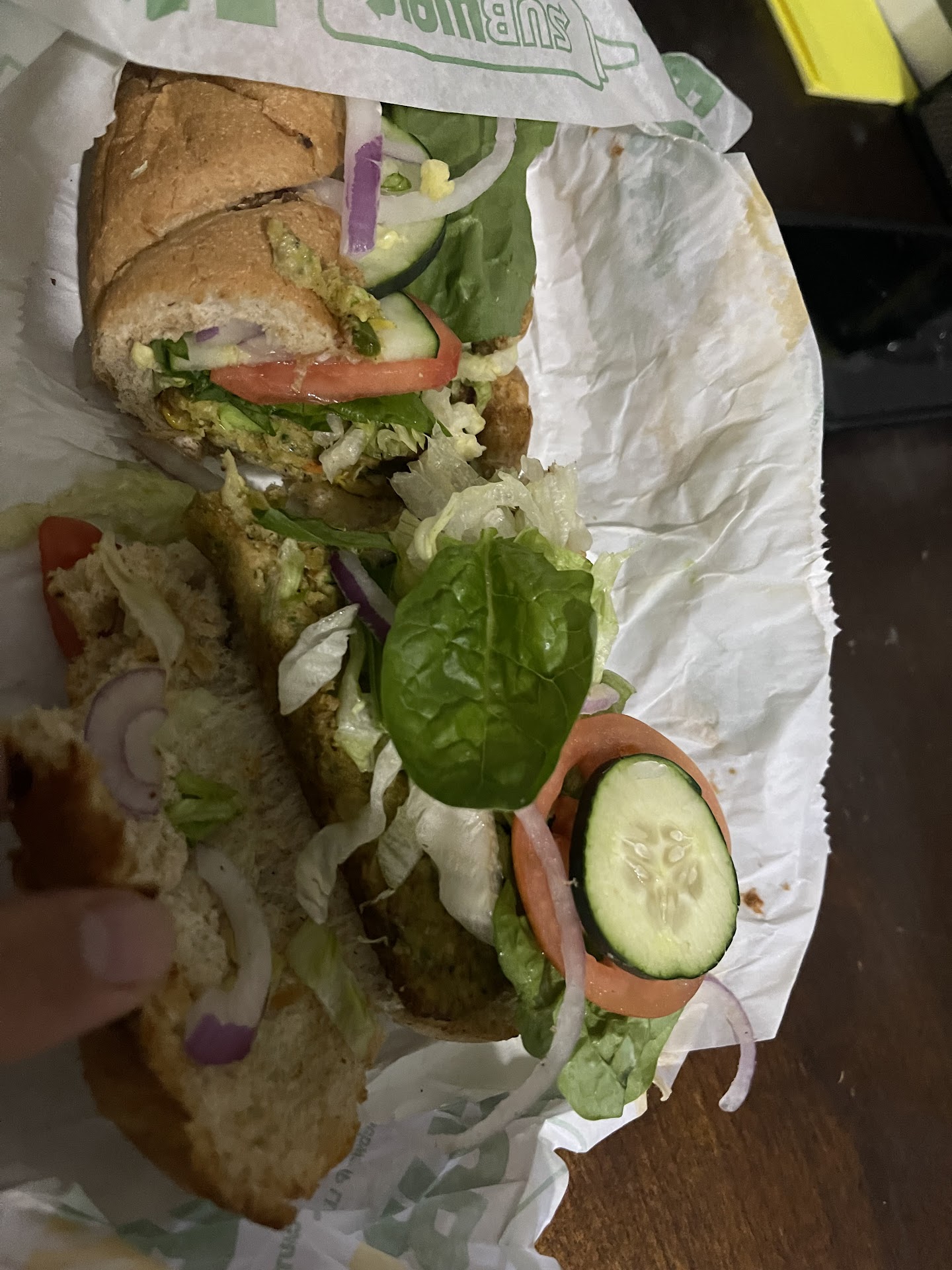 There were two people on the line and the first guy seemed fine, but the second person was terrible. First off, she didn't pay attention. She was constantly looking away and seemed very distracted and didn't appear to care. She cut the bread into crazy proportions that was uneven throughout. She threw ingredients on without regard; for example, the cheese was not even throughout, she layered some here and tossed some there, so I ended up with a sandwich that had double layers of cheese in some places and no cheese in others. I know this is not how you're supposed to do things. I could go on and on about how she prepared the sandwich and wrapped it, but the worst part was the cleanliness factor- her mask was under her nose and worst of all she took out her phone and started using it while my sandwich was toasting… she didn’t change gloves or wash or anything. I honestly felt sick after seeing this and really just didn’t even want to eat the sandwich at that point. In the end I did try to eat it but after a few bites I really couldn’t continue- it wasn’t worth the risk especially because I wasn’t even enjoying the sandwich. So yeah I just threw away a footlong. My girlfriend who was with me also got a 6-inch and said it tasted like it had something fermented/rotten in it. Beyond disappointed, we were completely disgusted and upset. This whole experience has me feeling like never stepping foot in another...