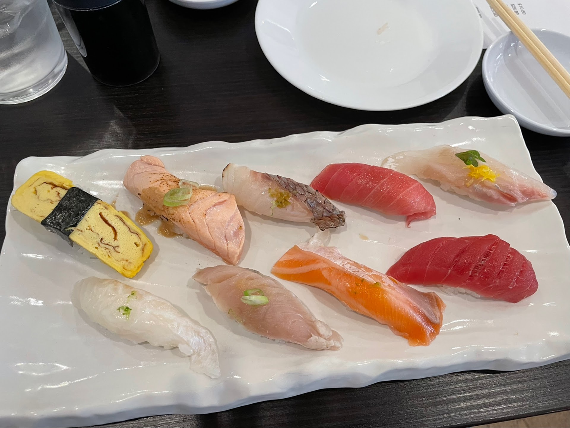 We (group of 2) each ordered the sushi combination (which was 9 pieces and a snow crab hand roll $65) - perfect seasoning, right amount of wasabi and soy sauce, no additional dipping required. We also each ordered a glass of sake and two additional pieces off the menu (scallop and black cod, both fantastic!!) - highly recommend ordering at least one piece from the specials menu if you’re a sushi veteran. My only disappointment was the snow crab hand roll - it came out at the same time as our nigiri sushi and I felt pressured to eat it right away to avoid the seaweed getting soggy. And when I did eat it right away, it didn’t make a difference - the seaweed was already soggy which makes me believe they had let it sit for some time before making the other pieces. For the price we paid for the meal in total (~$200 including tax), you’d expect a hand roll to be more crisp or brought out later in the meal. If I were to visit again, I’d order pieces...