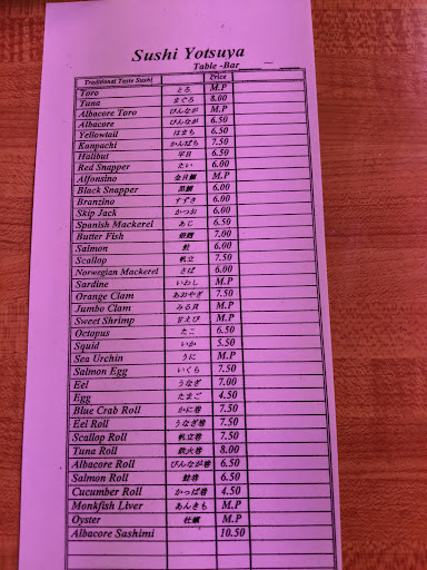 Sushi Yotsuya (yoh tsoo yah) has a very traditional Edomaè (eh doh mah eh) style which means that there will be no "clown rolls" which combine fish whose flavours or textures clash & then are doused with unctuous mayonnaise, tons of Sriracha or cloyingly sweet "eel sauce". If this kind of LA County fair-like food pleases your palate, save your money & don't go to Yotsuya.