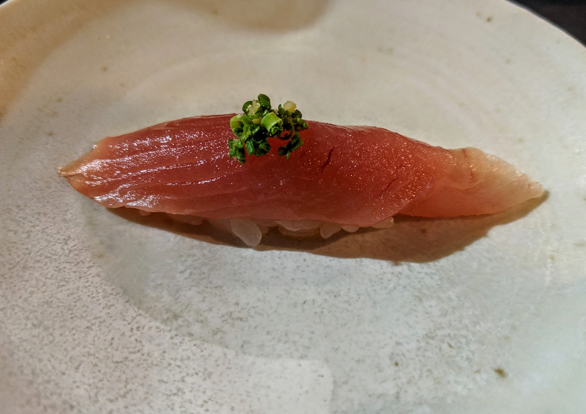But this place is different, and really something special. It's an intimate experience without any frills.They only offer one option, which is an elaborate omakase that takes more than two hours. We had ~ 24 courses, 20 of which were simply one small piece of nigiri. The nigiri are smaller than average and delicate, so you don't get too full. Satisfied, yes - but you don't leave feeling uncomfortable. The courses were paced perfectly, allowing 3 to 5 minutes between each piece. And each piece literally made us close our eyes and smile as we enjoyed them. Just wow.