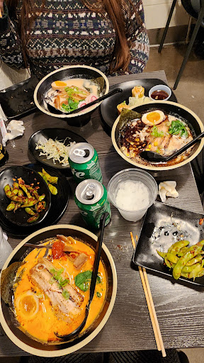 Food Review: Spicy Tonkotsu - The katsu was perfect, and the spice level was just right--not overwhelming but definitely not mild. Added extra wood ear mushrooms for an extra $1.50, and they were absolutely worth it. Tonkotsu (x2) - Whether made in-house or not, the tonkotsu was fantastic. Added extra scallions to one for an extra $1.50, and it just elevated the flavor. Thai Tea (x3, Large) - Perfectly sealed, well-balanced sweetness, and refreshing. Worth every penny Veggie Tempura - Some of the best tempura I've ever had. Light, crispy, and flavorful. Chicken Karaage - Absolute favorite! I've never had chicken karaage this good before. Perfectly crispy and seasoned. Salmon Roll - This isn't a sushi place, and at $10, the roll wasn't my favorite. But let's be real--you come here for the ramen, not the sushi.