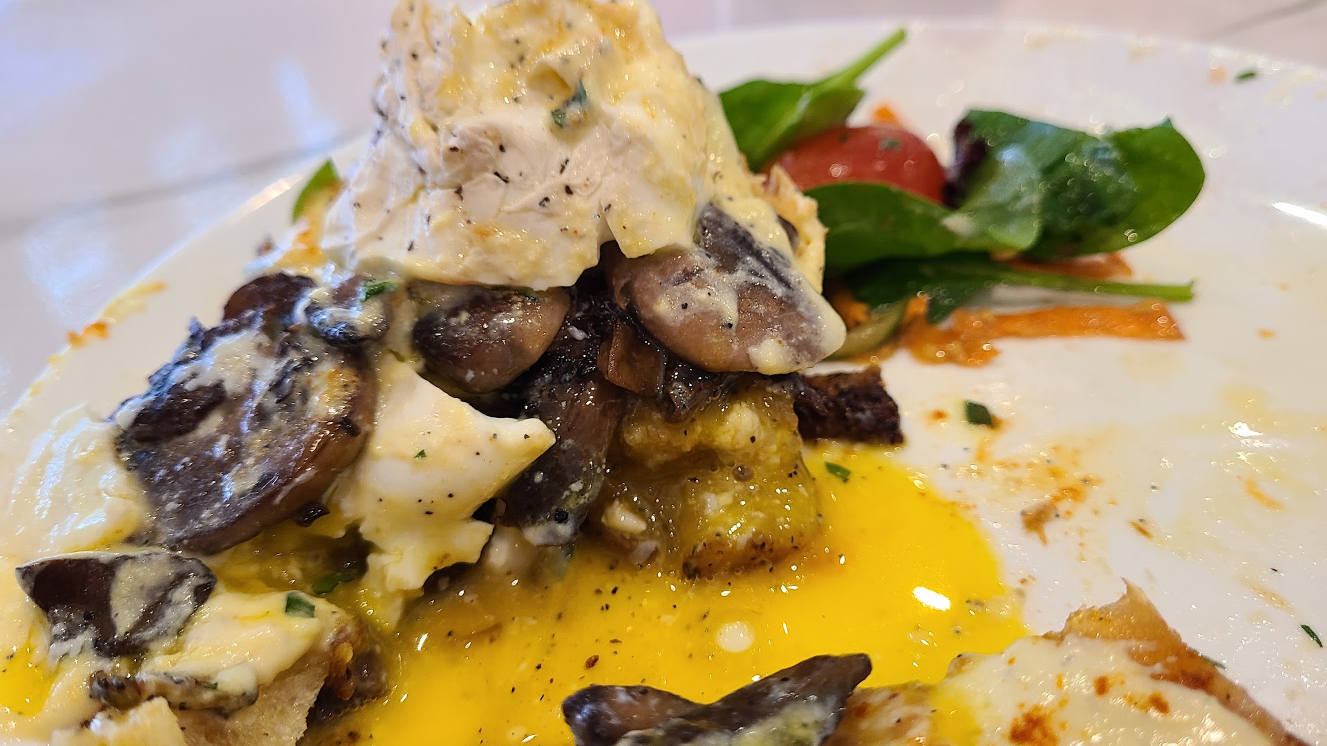 Tomatoes were mild and sweet, not tart like i dislike. everything was herby and slightly salty but above all rich and flavorful but still mild and balanced. the sautéed mushrooms so mild but the wine cut through the blend in such a bold yet subtle way. The bread is heavenly, fresh, soft but cuts easily like a biscuit and has a thick consistency while appearing airy. Eggs cooked perfect, very mild yolks and had no eggy taste. spinach and carrots, hollandaise, everything exceptionally sourced...