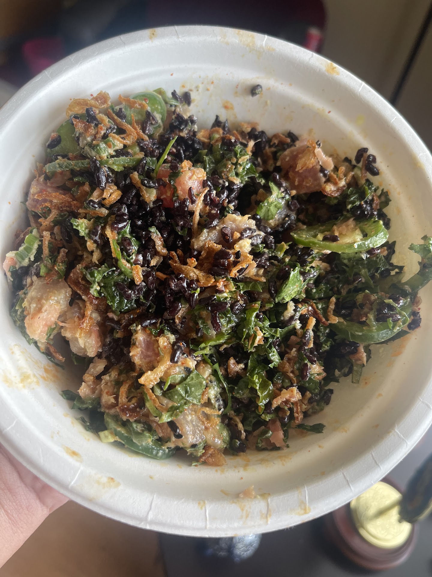 This alone is enough to keep me from coming back. Your portions are already small and overpriced compared to other poke spots, but I gave you the benefit of the doubt, believing your fish was fresher and your business more sustainable, until I noticed that the greed took over what was initially a creative and deliscious Poke...