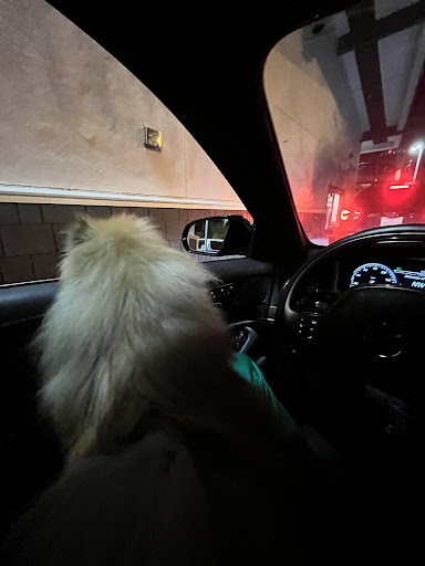 While waiting (not for long as it is very quick service), Tallulah Marlene prepares to see her friend, Louisa G. Without treats or petting, simply by the tone of Louisa’s voice, Tallulah knows she’s being praised and relishes the attention. Although Louisa is a favorite, this Taco Bell has had the best and friendliest cashiers for many years.