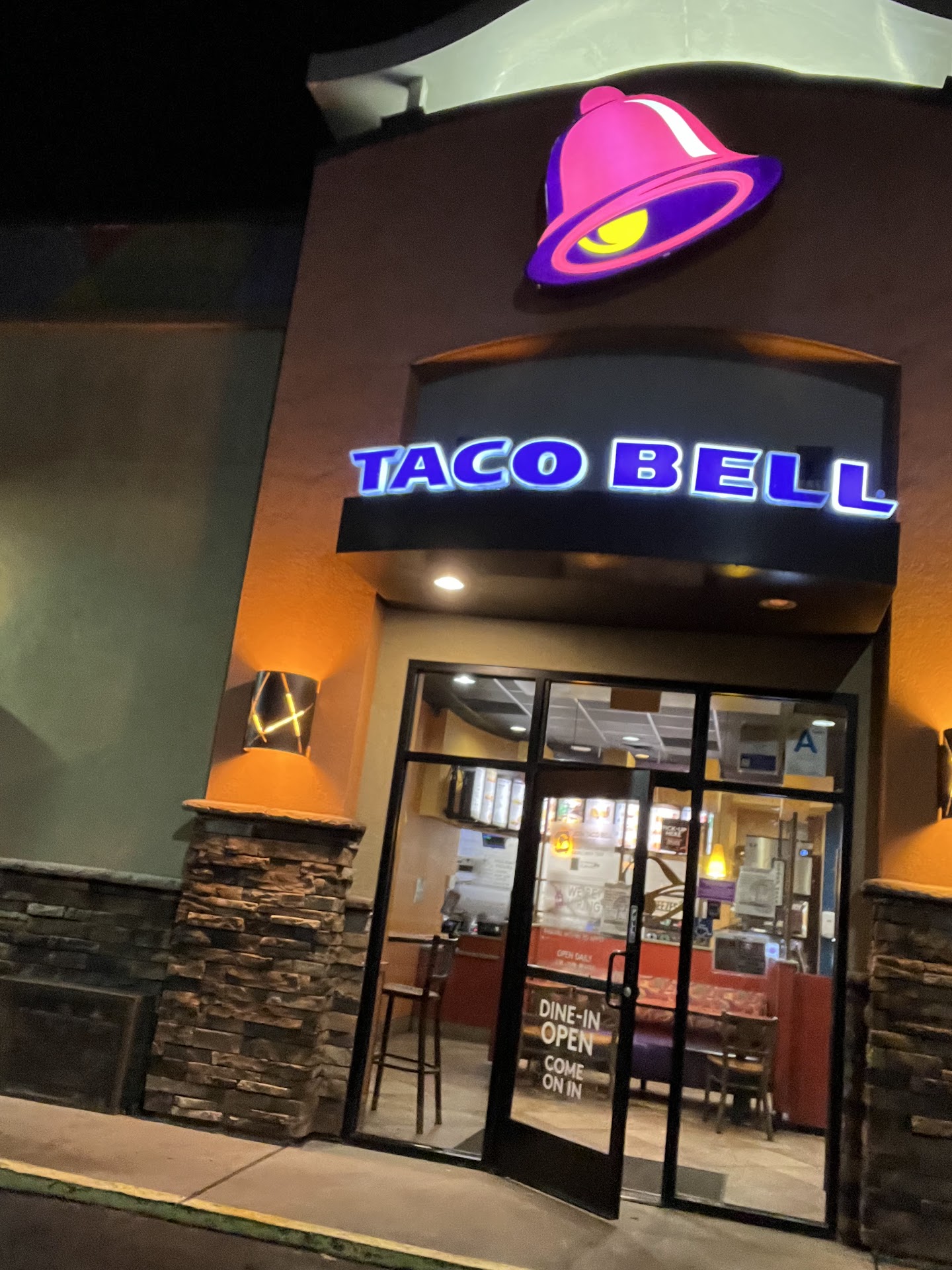 Ā Ā Ā Read moreHad Taco Bell in NorCal for the first in ages (as emergency food). I survived the experience, and decided to give my local TB a chance. At first I was a little peeved because every order was incorrect, but seeing as itās Taco Bell, my expectations are lows. Well, this evening I placed an online order, drove to pick it up, and when I arrived, they claimed not to have received my order. No explanation. I showed them the order on my phone, and the location and time, and the manager basically ignored me, told me I would have to pay for extra food, as though I was some freeloader look for a freebie. Stood in there for a while risking my health, while being ignored by these incompetence āemployeesā, Then was told I needed to call Taco Bell and get them to fix it. As though I was standing in a Macdonalds. I still have not received a refund or any communication from whatever passes as management at this place. The saddest thing is this, one expects diarrhea and mild sickness after a trip to Taco Bell, but it would be nice to receive...