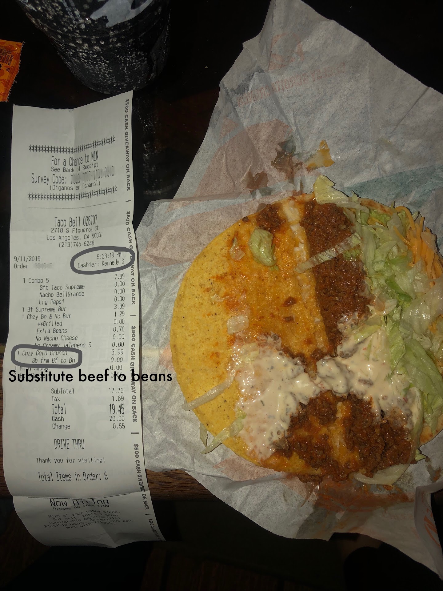 Overall I was not happy with this trip, but I'm trying to make allowances for the fact they JUST barely reopened and maybe they're still trying to get things up off the ground. They are down the street and I could have easily made the trip back and had them re-do the soft tacos or just got a refund, but I was already settled at home. Next time I'm just going to make sure I check the items before I leave the store. If this happens again or is a recurring issue, I'll be leaving Taco Bell alone again. I don't expect real authentic Mexican food here because it's far from it, which is why I said it's good simply for what it is, but I do at least expect orders to be correct and for notes to be paid attention to.