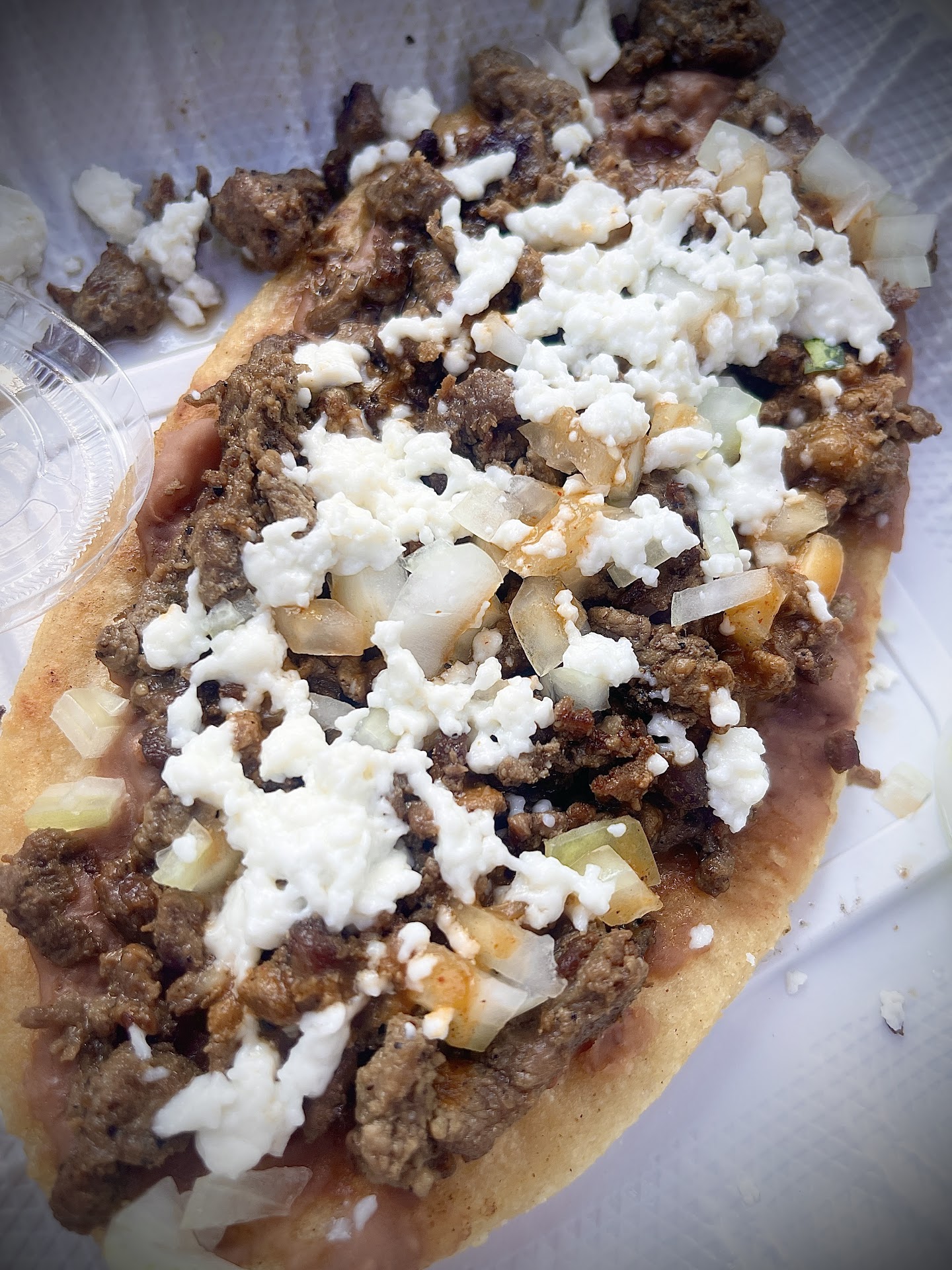 I ordered carnitas but I think they gave me ground beef, but it was FULL of flavor! Well spiced meat, respectš With some verde and onions (I donāt do cilantro) it was very satisfying. Iād have liked some pico de gallo which theyāre didnāt have out, Iāll ask next time.