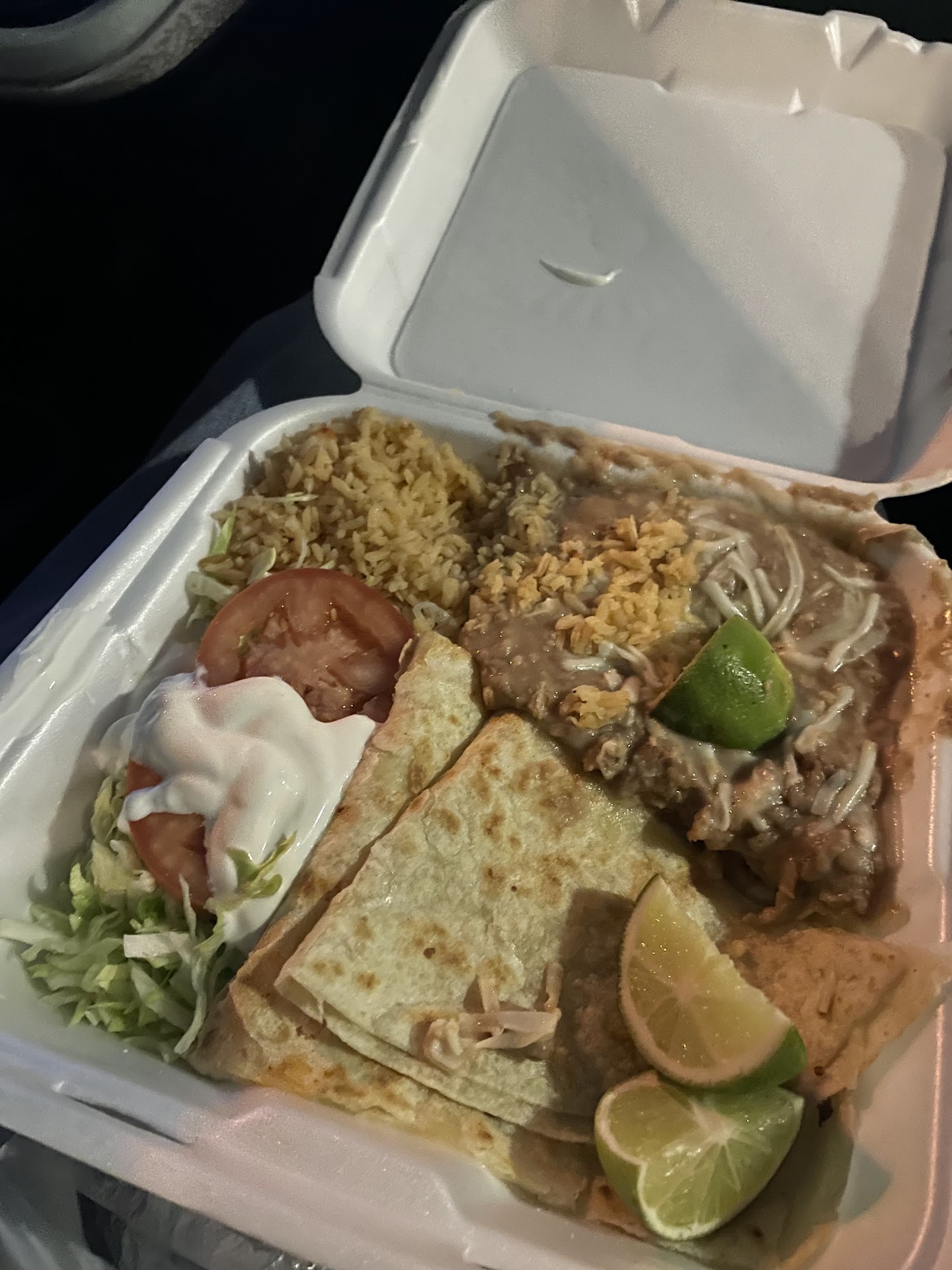 Tacos $2.42 each + tax Burrito $10.50 each + tax Torta $10.50 each + tax Quesadilla $10.50 + tax