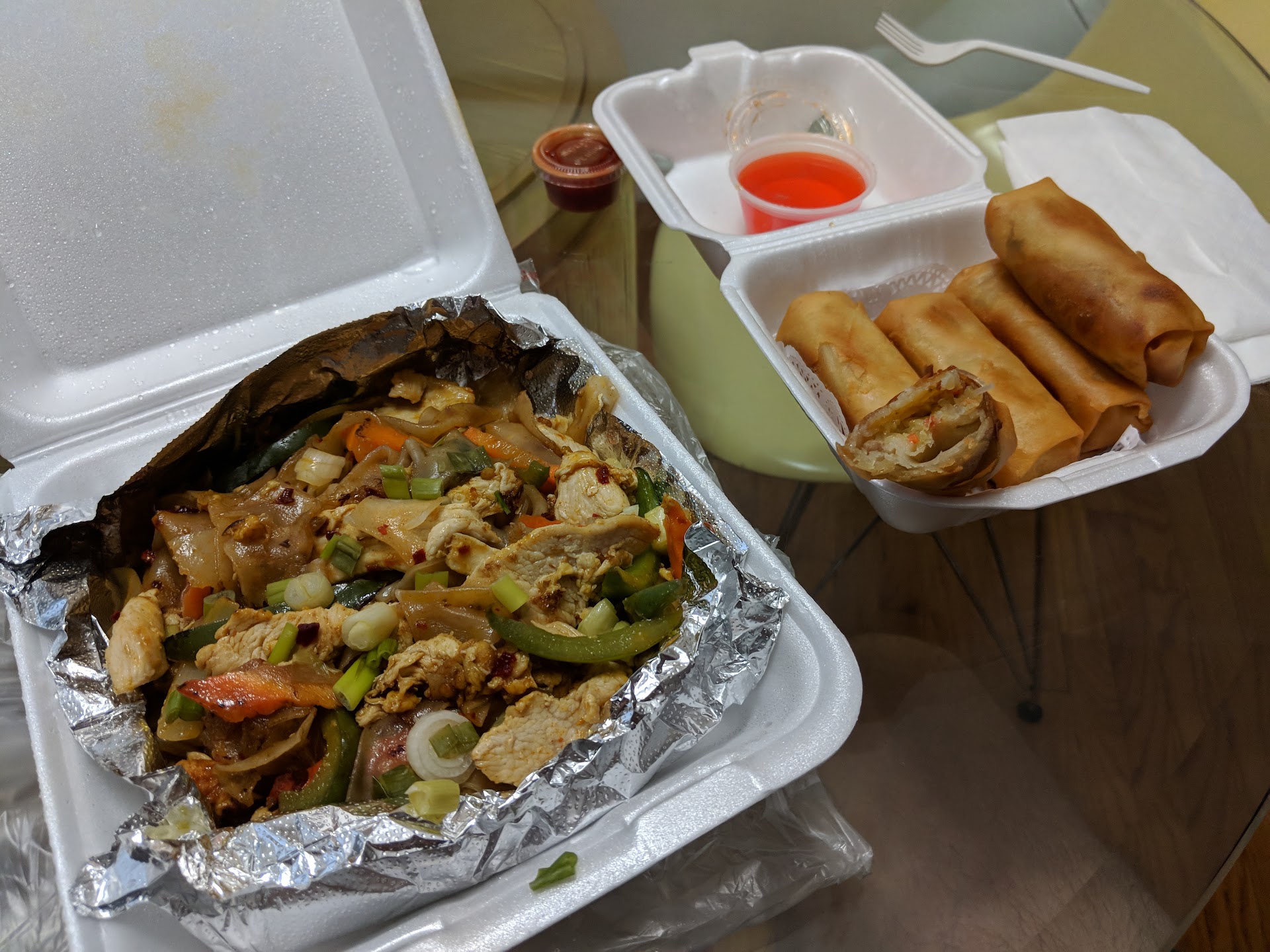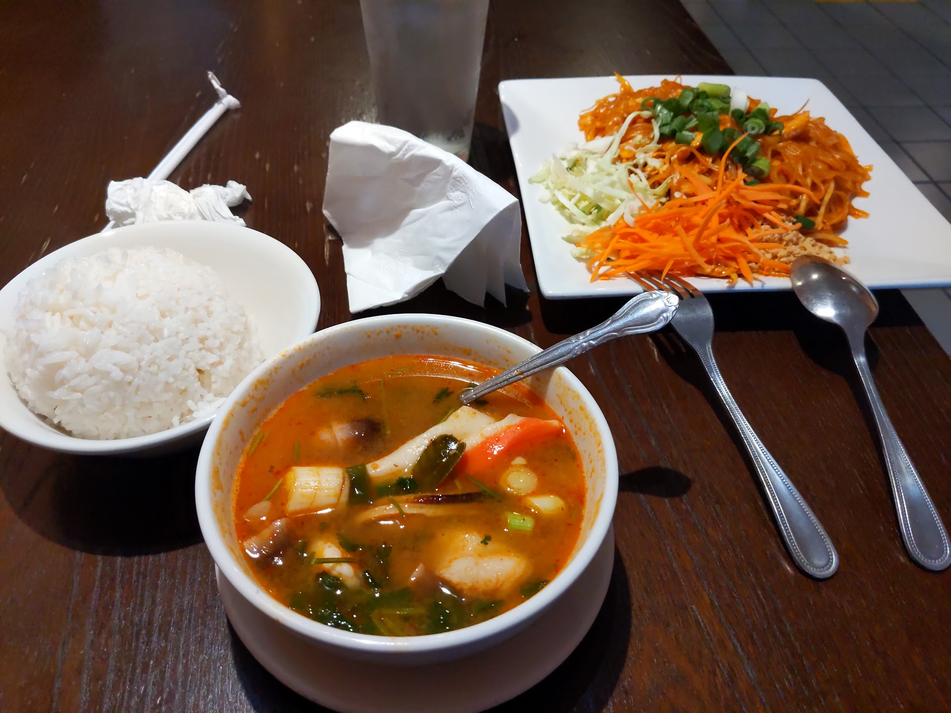The Tom Yum Kai again was just ok. The chicken in it tasted kinda weird. The mushrooms were good, but the broth itself was not as complex as that soup can be at good Thai restaurants.