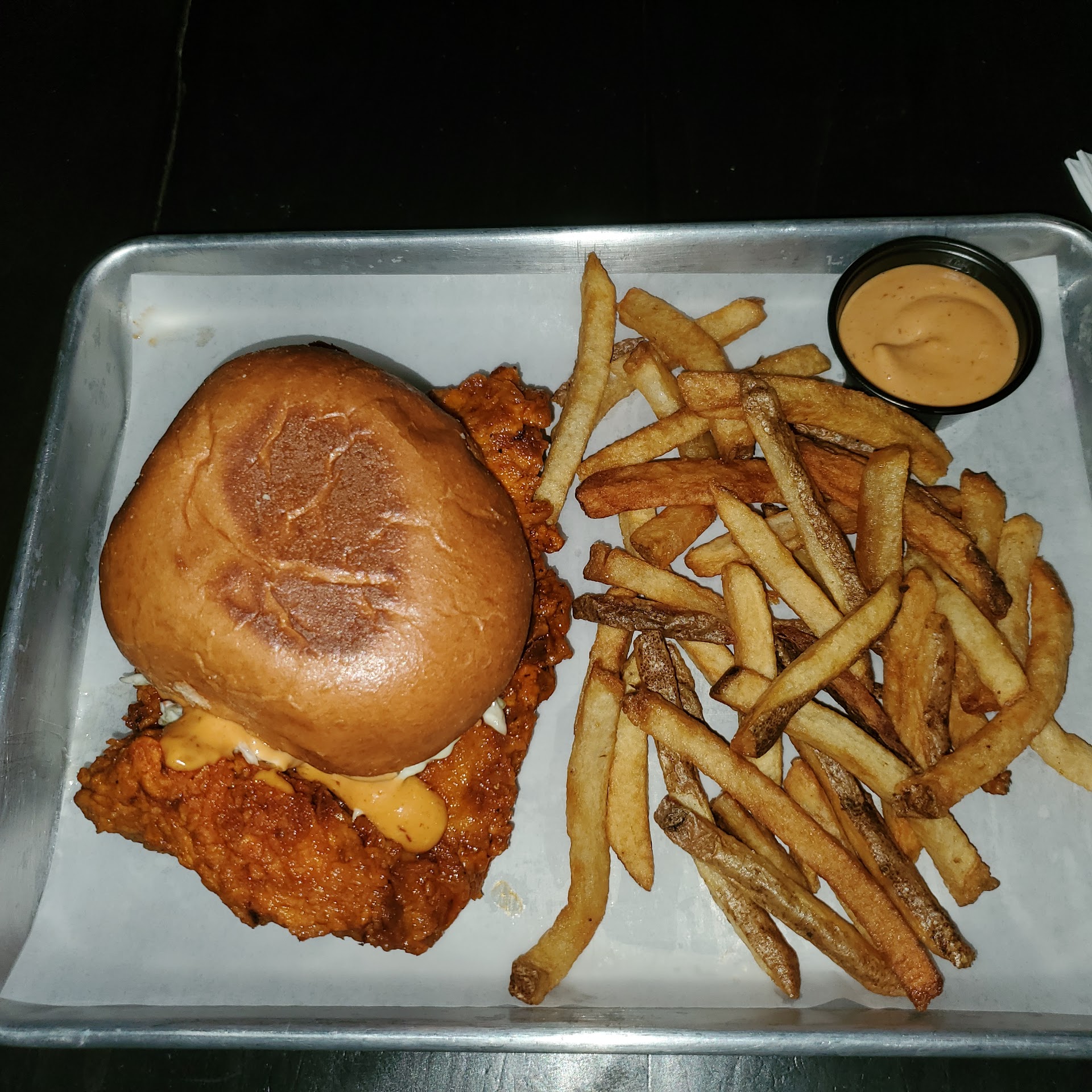 Oh wow! My husband passes by here quite often and always thinks about stopping by. We were looking for a place to have some dinner before meeting and we decided to try here. We were not disappointed. First of all the clients were all so friendly. They were more talkative than this staff but the staff was busy. We enjoyed hearing that a lot of them are regulars and come back often. This is a small place, a hole in the wall, type of place. We ordered from the Happy Meal menu and were so surprised at the servings. The burger which is a single burger was huge. My husband had to finish it for me. He ordered the Buffalo sliders and they were humongous. We also ordered a side of sweet potato fries. They were a bit on the salty side, but we just kept brushing off the salt. The sauces that it came with were so good. The food was excellent, and we had thought we were just starting to order but realized we were full. After talking to some of the customers, we realized we were running out of time and had to finally leave. By the way, the pours are great. And we sampled a couple of them before we decided on our choices. My only disappointment would be any Barrel aged drafts. There were none available. There were a couple of bottles, but they were $25 each, which seems a little insane. We stuck to what was on tap and really enjoyed our selections. Overall, we will make this a regular...