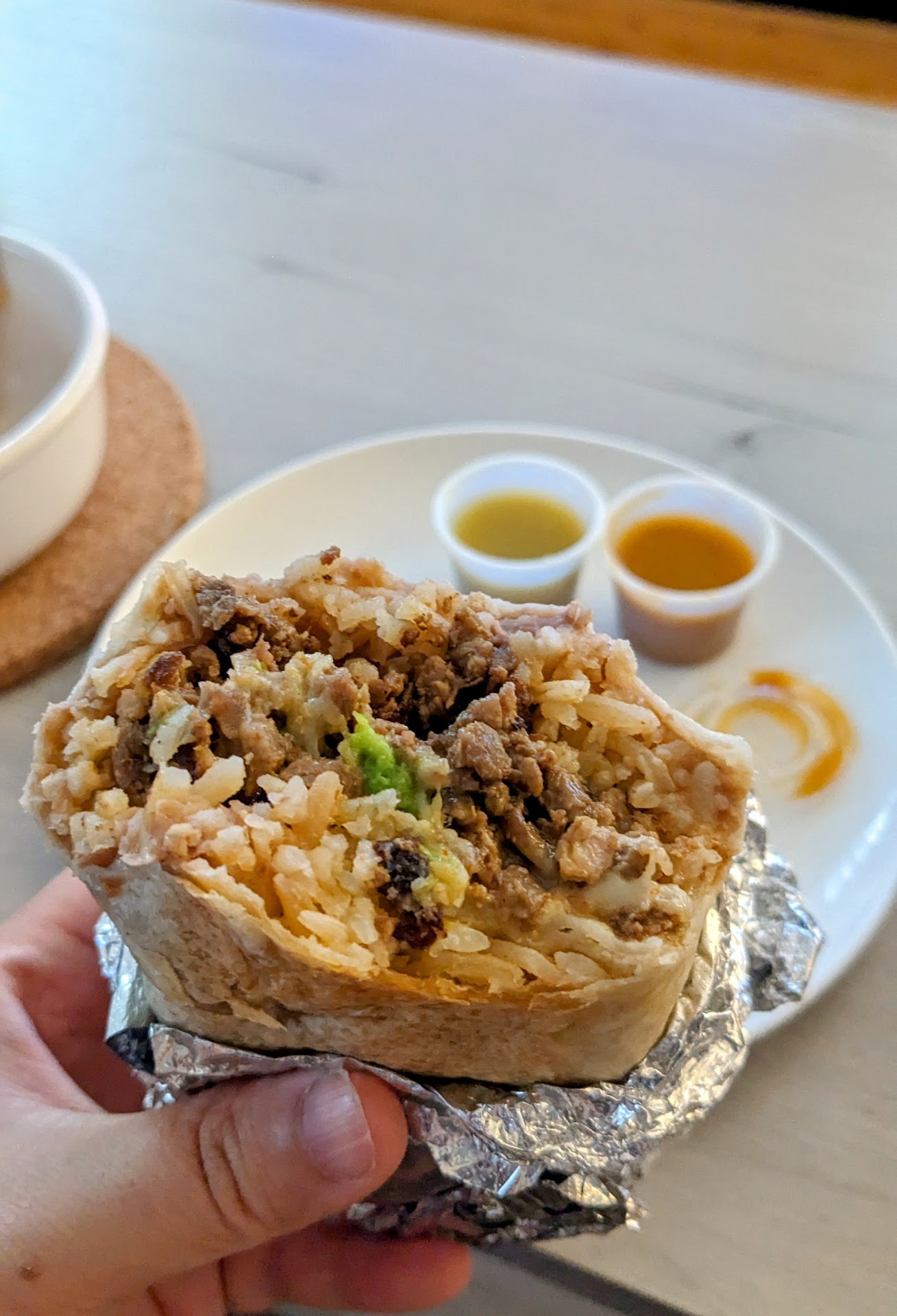 Tried: Everything asada burrito - doesn't look special when you cut into a cross section but the flavors of the meat is so well done it carries the burrito. Only small amounts of cilantro and onion and avocado but it really celebrates the asada Breakfast burrito with bacon - probably best breakfast burrito we've ever had. It has rice which is different than other places but everything is mixed together so well and flavorful asada Torta - perfect ratio of bread vs. Meat -asada fries - great flavor, love the salsa, cheese and avocados on top