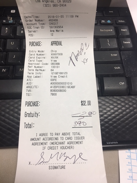 Several days later, I noticed while paying my bills that I had been charged $37 for that one drink. I knew something was up because I specifically remember adding up a total of $34 (my boyfriend and I literally had a debate about it because we are usually generous tippers so we clearly remembered the amount). After 5 different phone calls talking to various people who seemed to be covering for each other, I finally got one of the managers - Emil - to send me a copy of the receipt which I attached here. As you can see, someone clearly tried to change my tip amount from a 2 to a 3, and the total from 34 to 39. Instead of apologizing and doing to the right thing (fixing the amount of the charge), all Emil offered was a free shot if we came in again while he was working. He said he wouldn't do anything else because apparently this clearly altered receipt isn't enough "proof."Obviously, I'm never coming to Tekila again. I'm sure that this isn't the first time they've taken advantage of customers who were out drinking, so wanted to warn you all...