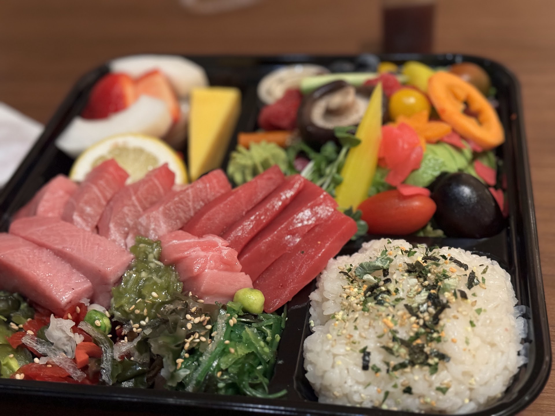However, this time, fueled by my husband's remarkable curiosity, we ventured to try this American-style sashimi bento.