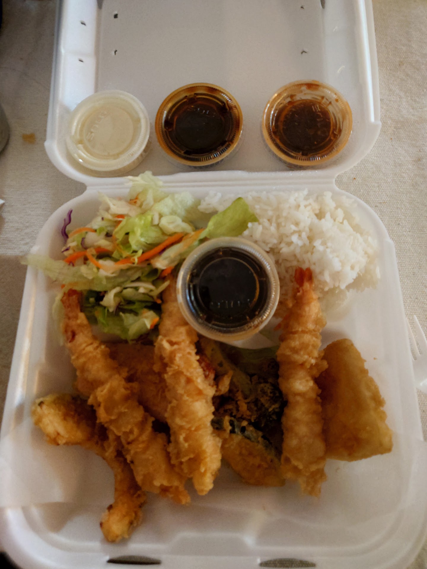 However, they do serve some great food with big portions. I ordered the Teriyaki chicken and it was decent. I think it could have used more Teriyaki sauce but it was tasty. They serve tempura fries with some kind of white dipping sauce with most of their entrees.