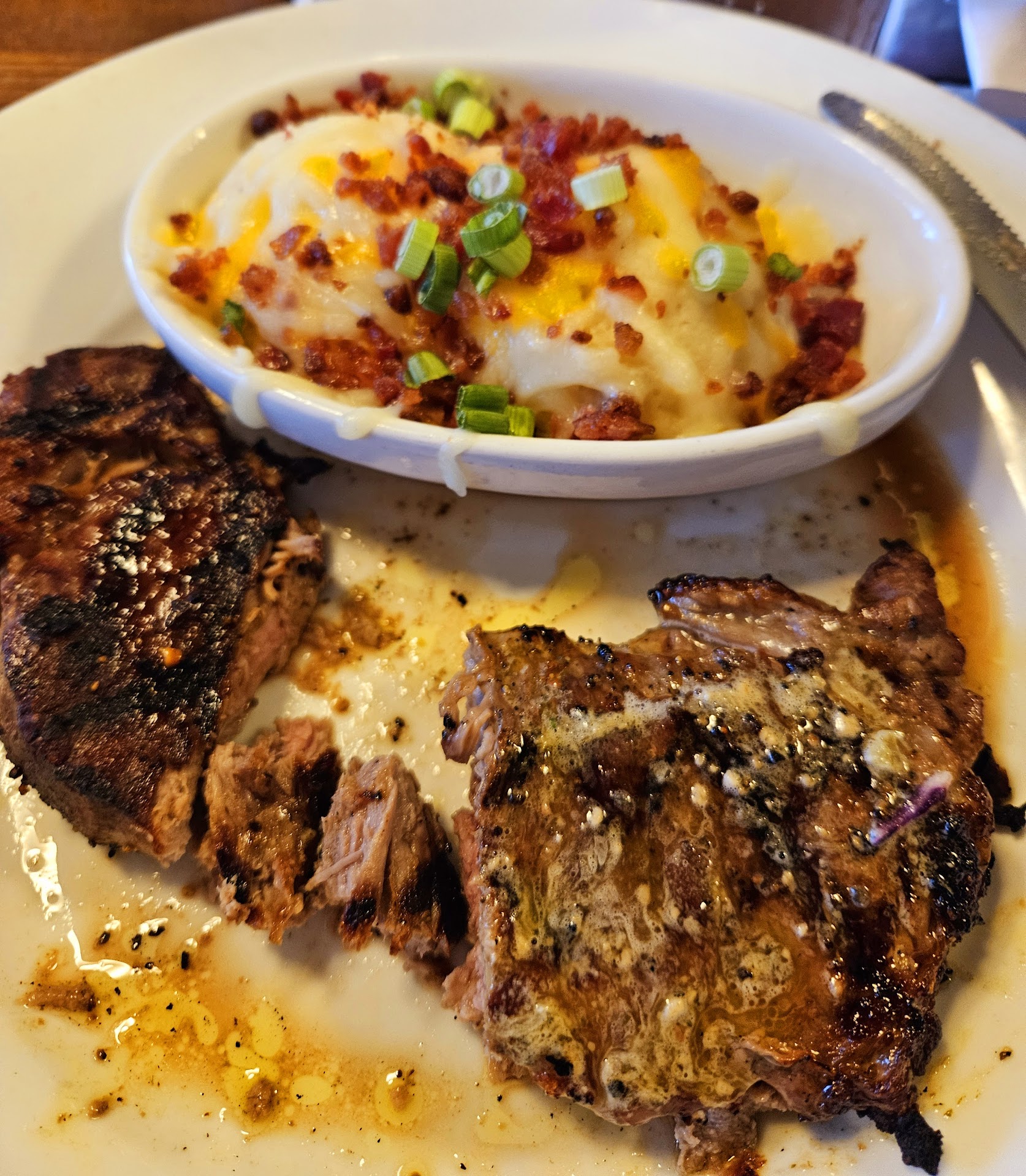 Read moreWe enjoy eating here at TGIF as our local neighborhood restaurant. The. parking is easy, we and have never had a problem parking, as it is part of a larger shopping mall. The food is always good, the service good, the staff are friendly and the prices are just right. We like coming for their occasional specials and deals. Right now their having a $14.99 special, you get 2 proteins like a steak and salmon or steak and shrimp, plus a side of vegetables and baked or mashed potato. The best time to come is lunch time, no waiting, it’s quieter, you don’t feel rushed to finish and you can linger. Dinner time is another matter. We came here on a Friday at 4:40pm and the wait was about 5-10 minutes. By the time we left about an hour later, the restaurant was packed and the benches outside were all full with patrons waiting for a table. I don’t know how long the wait time was for them, so I recommend coming early for dinner. We like their soups, the onion soup is especially good. We always order the flatbread as a appetizer, very good as well. Their portion size of their desserts are huge. We ordered the red velvet cake, so moist and yummy, to share between the two of us and we couldn’t finish it. This is a great casual restaurant with good food, good service, and good prices. I highly...