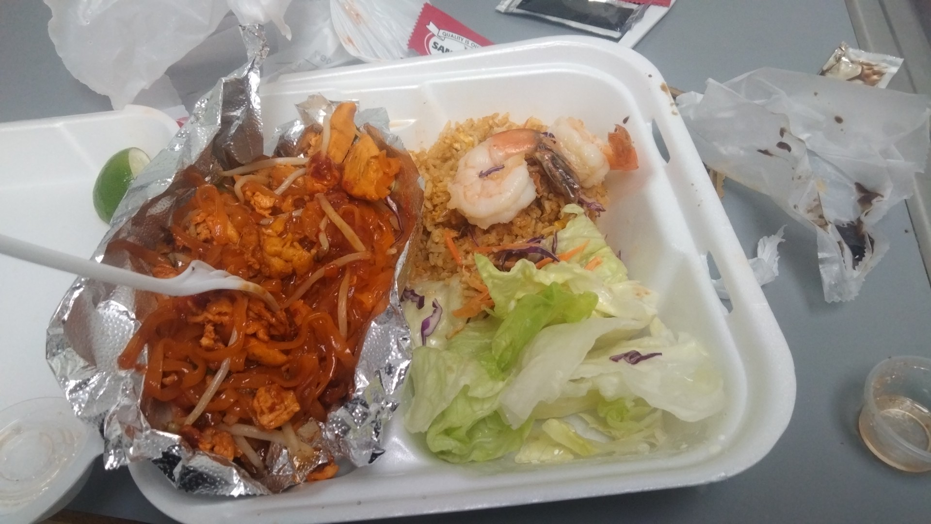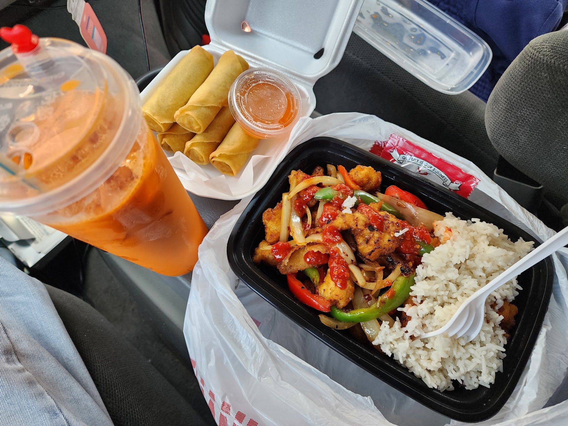 Read moreThe spicy garlic fried chicken is good. Nice spicy taste to it. The Thai ice tea is good too. I did not get to try the egg rolls from here because a person came to ask me for money and I just gave them my egg rolls. But just by the looks of it i am sure those egg rolls were good too 😊. I felt like it was a little high on price. $29 for this meal. 😬. But it was good food. I appreciate the...