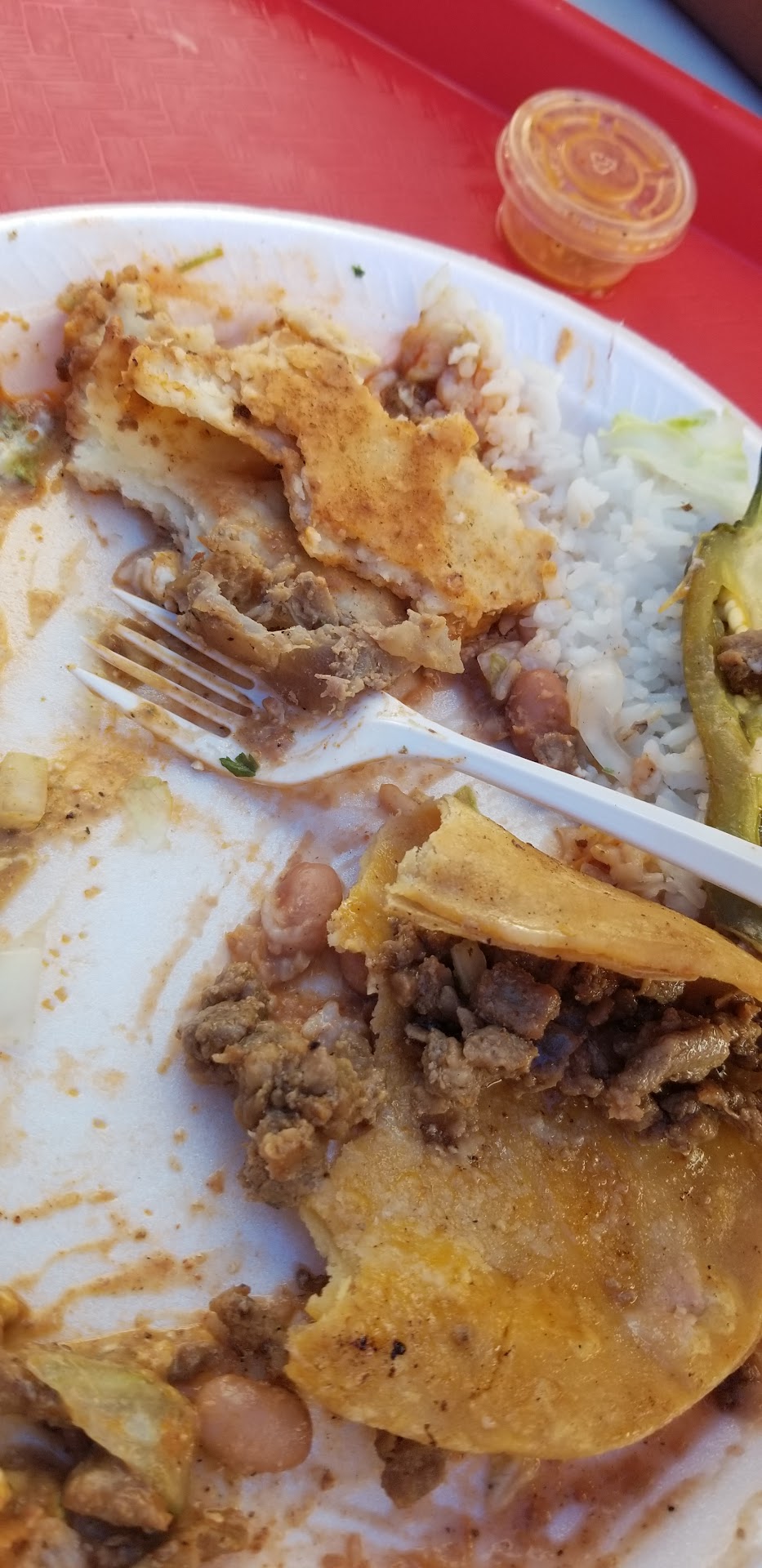 Read moreI ordered the Super Huarache de alpastor with rice and beans. Before ordering I asked if the Huarache was hand made on site fresh. Sad to say it isn't, it comes out of a packet. The rice was undercooked and hard still, and the beans are your cheap canned beans. I also ordered 4 tacos de asada. If you see the picture I used most of the meat added was fatty meat, mostly inedible. The place has a B rating. Yes I ate the food as that whole meal cost me $35 as of 7/12/21.