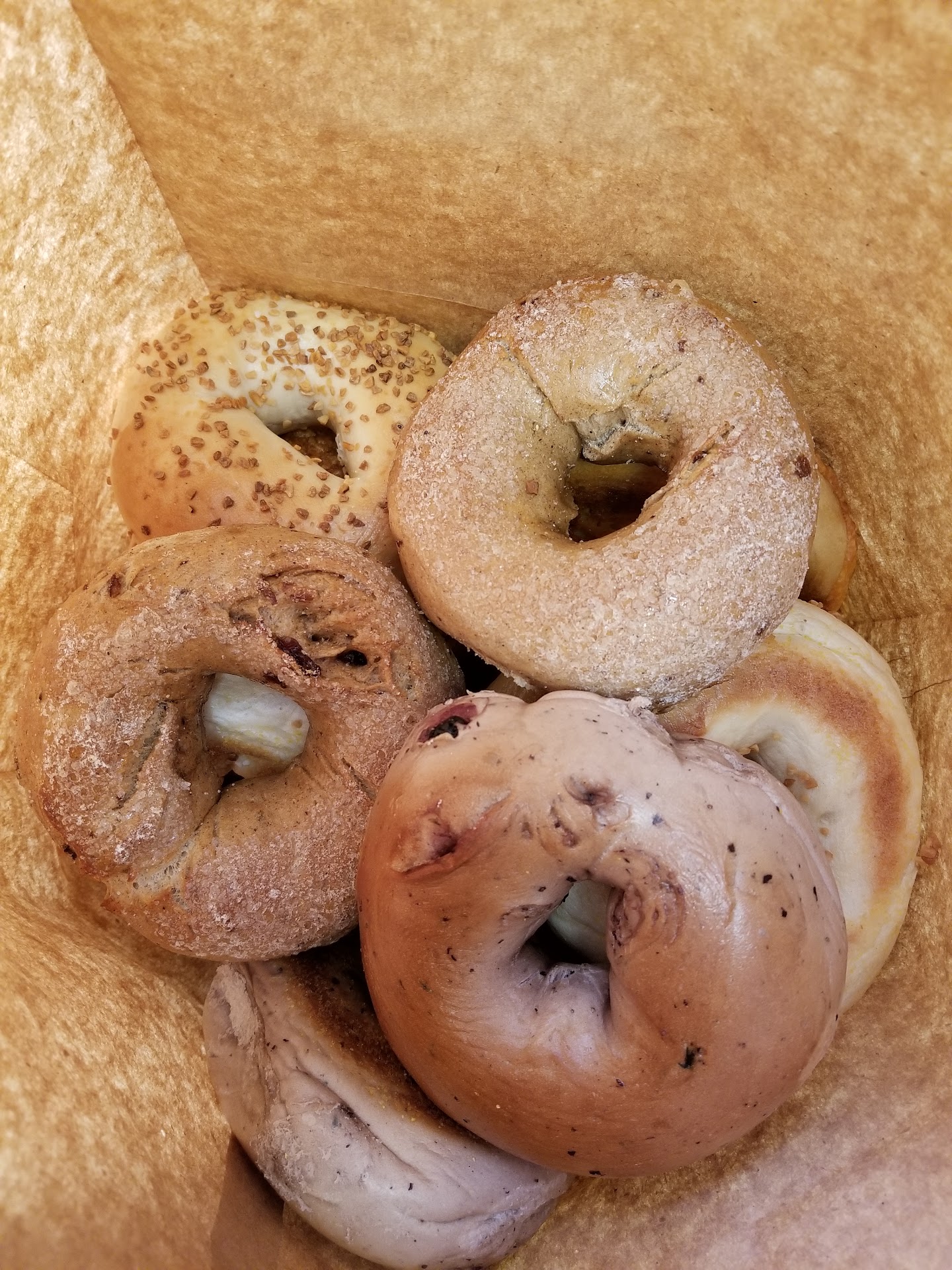 Read moreI stood in line as a sad NYC bagel skeptic, expecting just another airy bagel or what I call a kaiser roll with a hole in the middle. A bagels merit is based on a NYC standard, untoasted with shmear. Sure, you can make a great 'sandwich' out of your airy bagels and call them awesome, but you are rating a sandwich, not the bagel. I ordered an onion bagel, untoasted, lowest expectations as always. One bite in, ,, ok, ,,, ok... uhhh yes, yes,,, yes, then another yes. The bagel was perfect, had the crisp exterior that's so hard to duplicate and dough that squished with density. The flavors kept coming. By my last bite I had a tear in my eye, I realized I've been starved of a great bagel for 25 years. I went back, ordered another and experienced the same effect. Finally, a bagel in California worthy of its namesake and could be honored by any spoiled NYC unapologetic bagel snob like myself. Thank you, I'm finally humbled, the order of life...