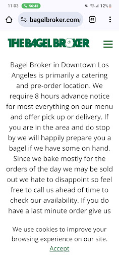 Read moreI order breakfast here for our office every single week. I think weâve been ordering from here for years. We get bagels, fruit, yogurt bar, muffins, coffee and fresh squeezed oj - and every week itâs a smash. If weâre feeling fancy we get their bagel breakfast sandwiches which are delish, and customizable for all dietary restrictions. I can honestly rely on bagel broker to work with me and deliver my order on time, every time. They use their own delivery drivers and you have no idea how refreshing it is not having to deal with third party deliveries. I can place a big order the night before and they will have on my doorstep the next morning....