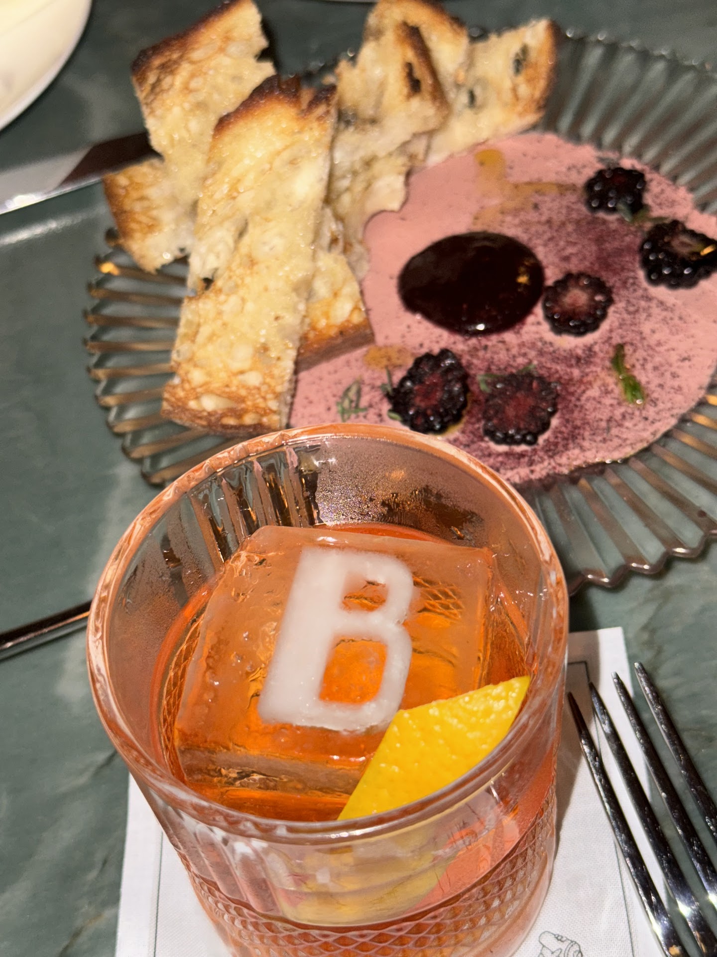 First impression, the space is very nice and kind of has a speak-easy vibe. Dim lighting with tight spaces where tables were. The hostess took us to our table and they are definitely using every possible inch to get tables in. The first option would have had me sitting in the persons lap next to me so I asked we could switch to another more open area table and they accommodated happily.
