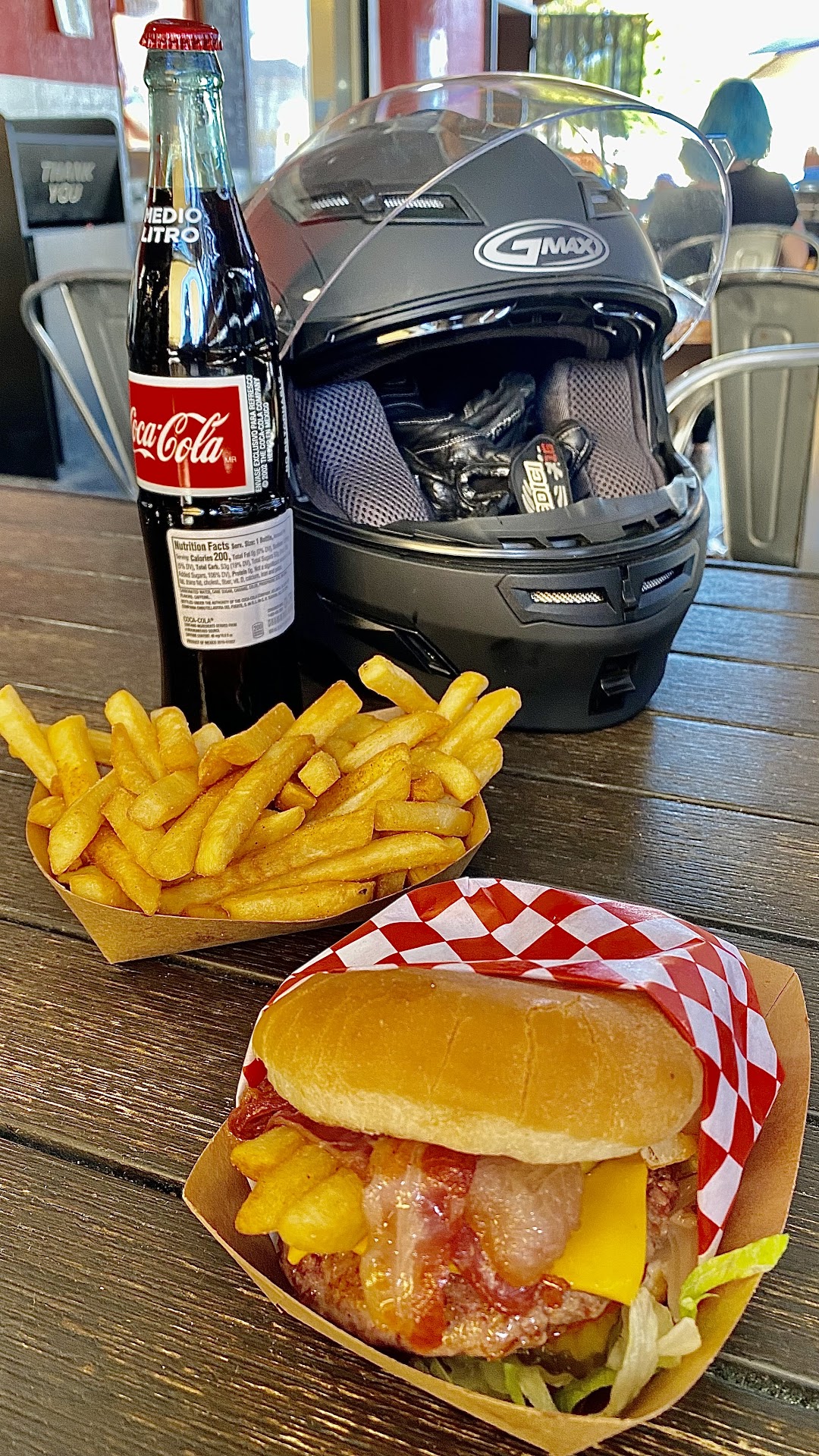 So based on this I just can't recommend this place. It is pet and bike friendly and has free parking in a small lot, but service and food aren't that great. Especially when there are plenty of burger and fries places that give you good bang...