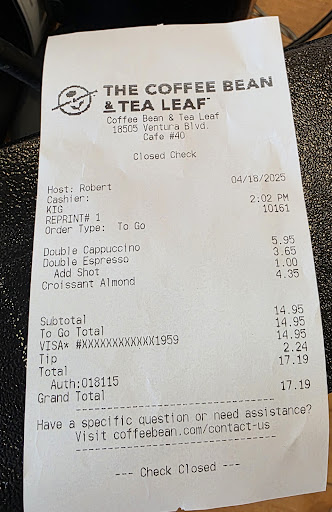 At this point, I decided to leave. I placed my check on the counter, as I was not informed of the total amount. Later, upon checking my bank statement, I noticed a charge of $17.19. To my dismay, I discovered that a tip had been automatically added to my bill without my authorization. When I inquired about a refund, the tip amount was not included.