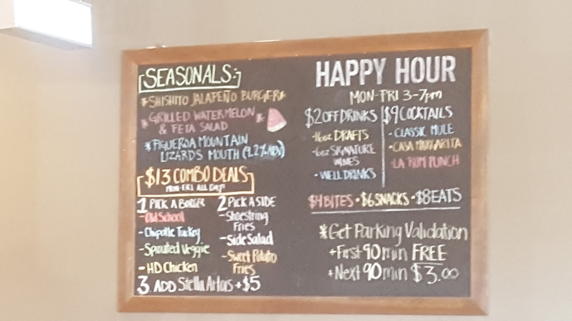 Q) What did you order? A) Upon perusing the menu, the prices seemed to high for us. There were a plethora of varied & intriguing burger & sandwich options, but too much for what we were looking for. We decided upon the Fifty-Fifty, which is 2 fries of your choice. Our picks were the sweet potato & chili cheese fries (additional $1).