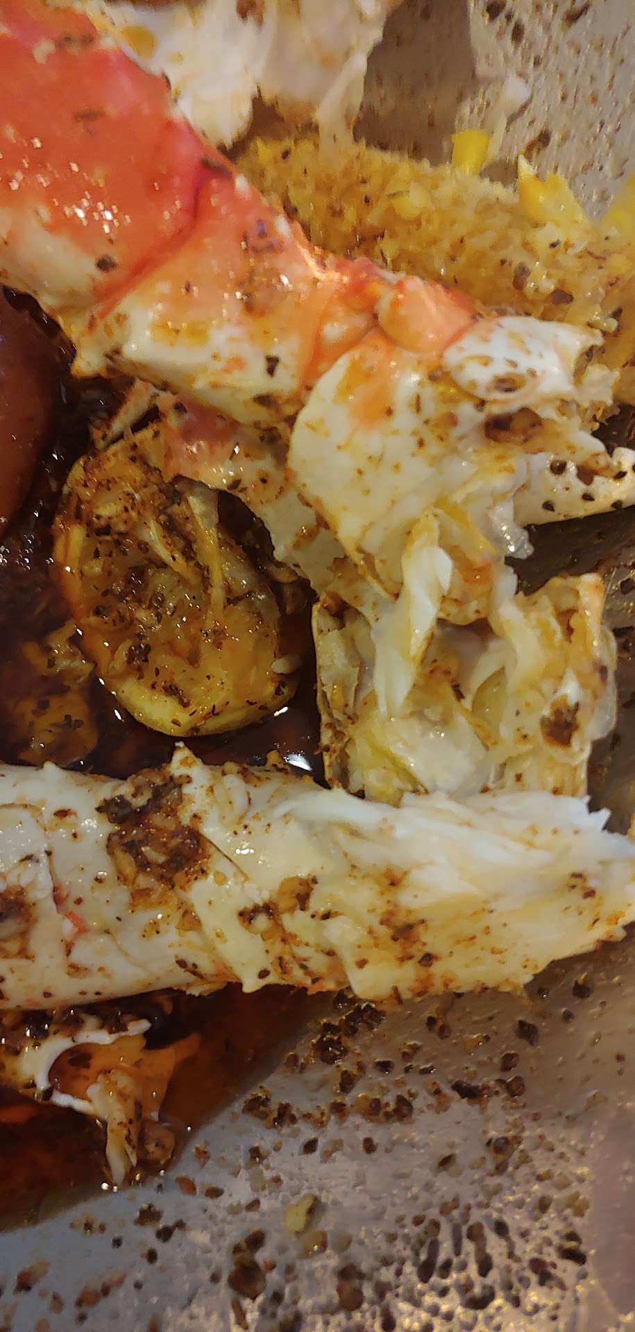 The food. Seasoning was on point. We ordered the sampler deal, extra side of 1lb of shrimp, calamari and wings. The seafood with the cajun mixed seasoning delicious. Calamari I loved it, but my daughter liked the other spot better, the wings were cooked to hard. The seasoning on them were good, but I don't like to fight with my food. Also the spice level was ok. There spicy is not spicy. I guess when I do stop in again I'll try the omg spice level. Maybe that will be the level of hot we like.