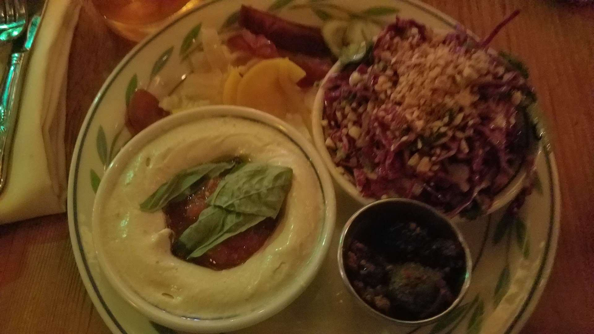 Read moreA vegetable centered Asian and Middle Eastern fusion restaurant in the financial district in DTLA. The inside is really well done, dark but in a welcoming way with thick wood tables and plenty of different types of seating, complete with a wood paneled bar. My server was very polite and did a great job as well as the rest of the staff I encountered. When I sat down there were all open tables around me, but within 15 minutes every single table next to me was occupied. I wish they would have spread around the seating a bit more, especially because the table directly next to me consisted of a very loud group.