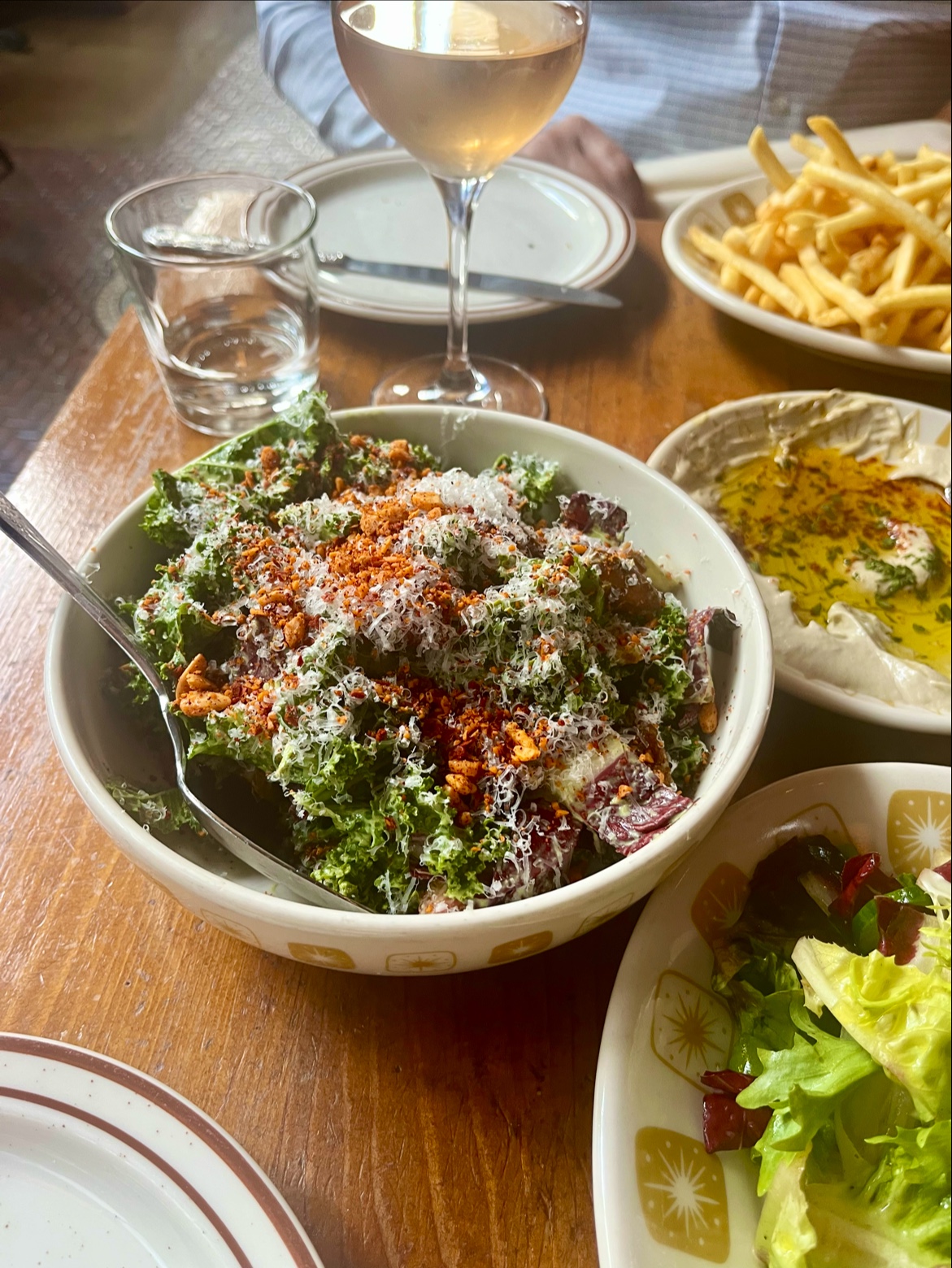 I wanted to order the Stracciatella & Peaches, but sadly they were sold out of it this evening so I went with the Salatim Platter instead. Tonight it consisted of hummus, burnt eggplant, and red cabbage. Overall it was okay, I really enjoyed the hummus but the other sides were pretty bland and weren’t as rich with flavor. Next came the Chorizo & Clams and this dish really let me down. The amount of chorizo was very small, it was too chopped up to be able to eat it with the clams, and had absolutely no spice to it. I would suggest using Merguez sausage instead so at least there’s some kick to it. They also added way too much kale, it was almost raw, so it was a strange flavor combination with everything else. I felt as if I could make better at home. Based on my first two courses I decided to skip dessert to avoid further disappointment.