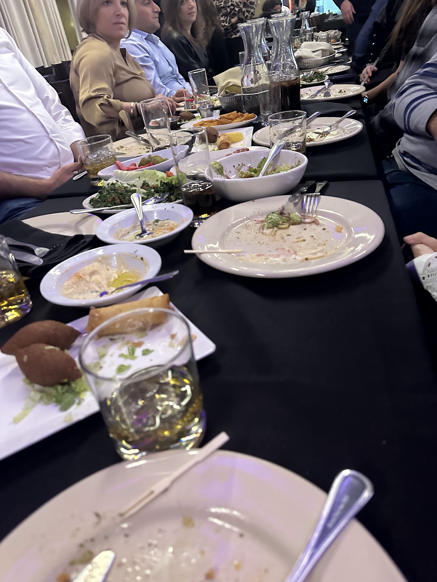 Food: Appetizers are superb across the board. I tried their hummus, Tabouleh, baba-ganouj, fatoush, kibbeh Naya, and taziki.. their cooked dishes were sub par. Deep fried cheese roll (boorek) was under whelming, the other deep fried meat stuffed kibbeh (no clue what it's called) I did not try but I was told it was not good. Their main dishes, ground beef kebob was quiet dry. Their chicken was charred and ultra dry. The third meat dish which was supposed to be included in the most expensive $70 dollar menu was not on the plate. Rice I did not try.