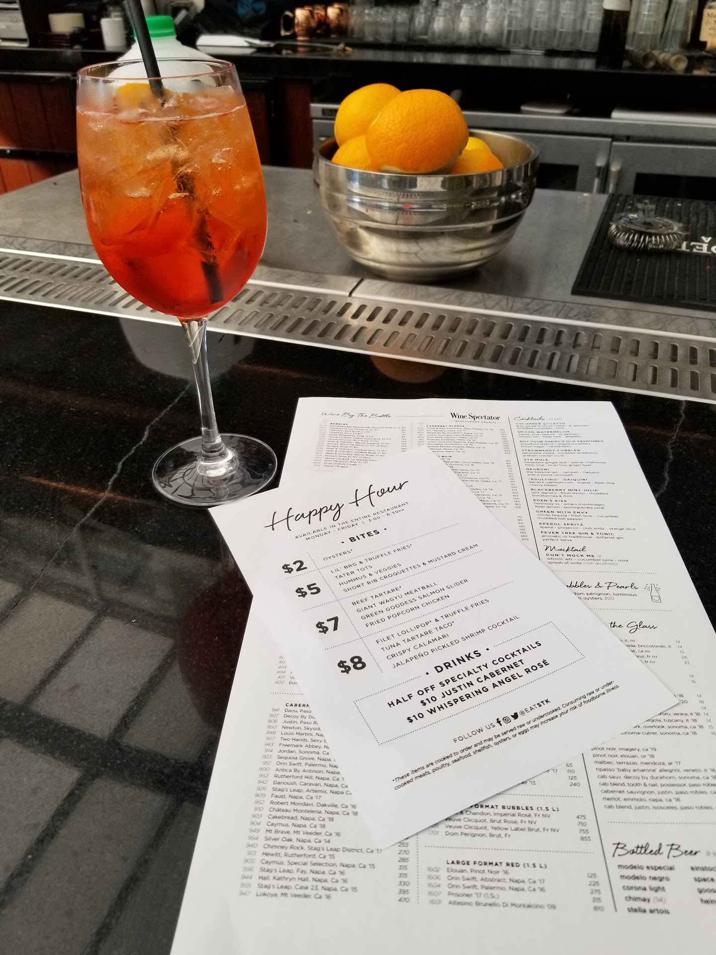 While they placed us in the sun, we were told an umbrella would be brought over immediately to provide us with a well-needed respite from the 93-degree heat. To demonstrate my point, please refer to the photo of the patrons roasting in the sun. No, those aren't pieces of meat in the oven, though if you look carefully at the woman in the back right of the photo, you will see the true face of despair. This is what we were subjected to for 16 minutes before I finally got up and asked the waitress (who had not been by our table yet), if I could grab the umbrella myself. She apologized and said it would be brought right over, after which we waited another 10 minutes for an umbrella. After I stooped to the floor to pick up my burned skin that had sloughed off from my bone, I realized that we had been waiting 26 minutes without help from any servers. We were able to flag someone down at around 30 minutes, at which point I ordered a happy hour beer, and my assistant ordered a gin and tonic.