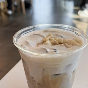 They did offer some pastries and Chia Puddings but not heavier meals. My drink, which was only available in iced, turned out awesome. They even had small banana chunks on top. It was refreshing, not overly sweet, and the banana flavor surely didn't overpower the pretty bold coffee and even complemented it very well....
