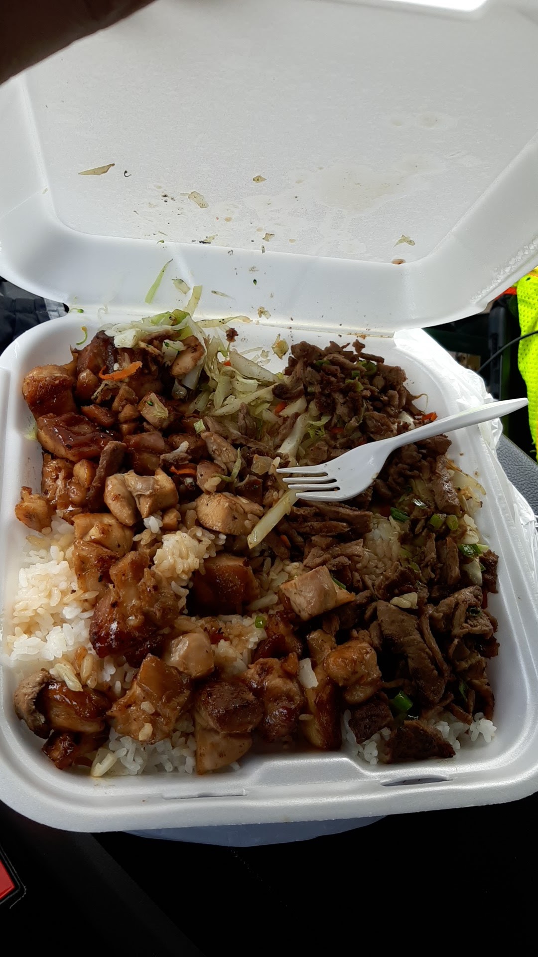 Read moreThe cook is all smiles and very friendly. No, he is not Japanese but he IS the hungry ninja, he says. Great portions for the price. Cooks it right in front of you on a grill so food will be warm/hot. Fast service. The beef tastes like a better version of Yoshinoya. He's happy to give extra teriyaki sauce if you want it. Very satisfied with the shrimp...