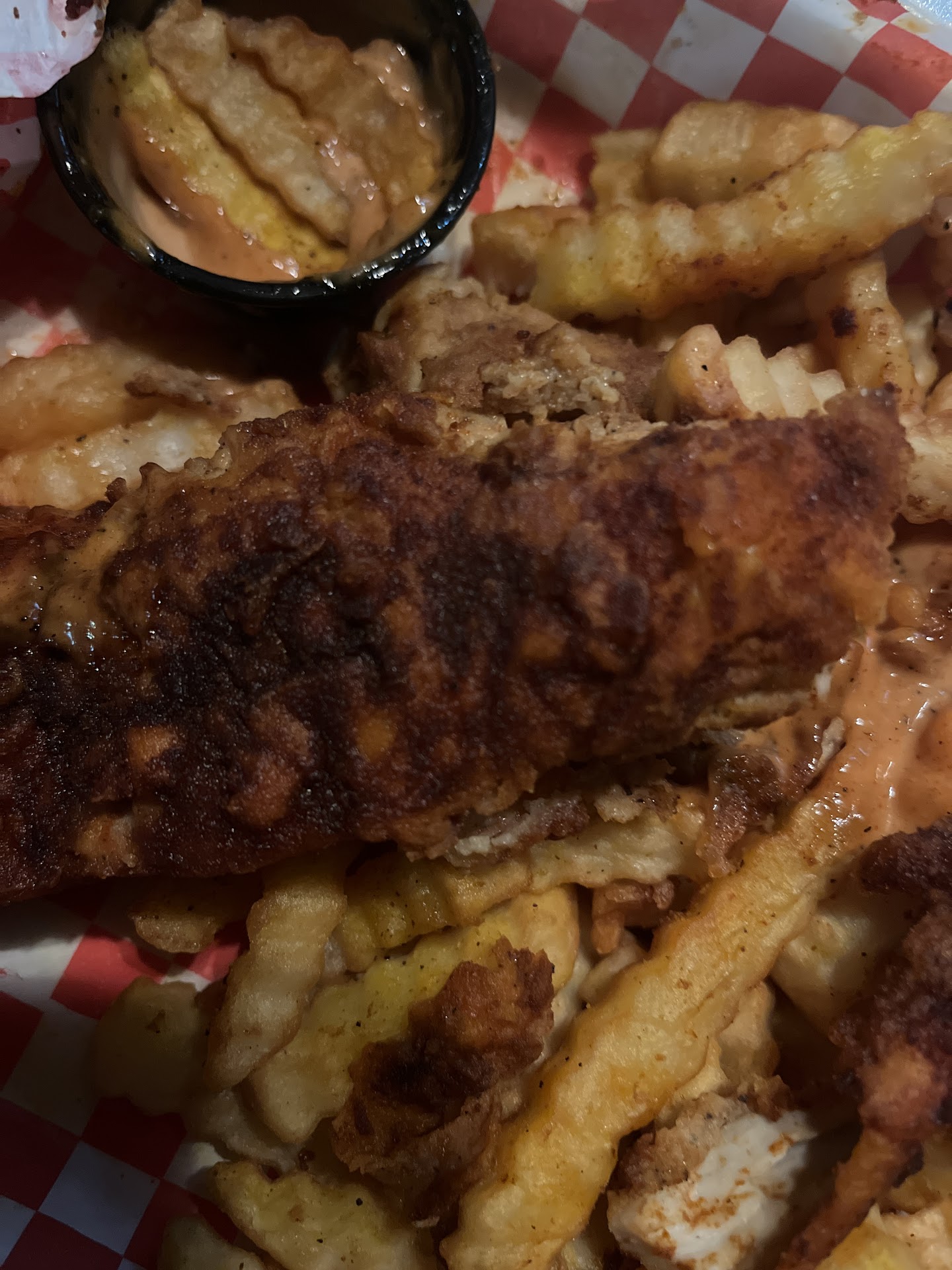 Read moreWas passing by on my way home from a long day of work and saw this place and almost made the mistake of passing it up. So glad I didn't. I got the loaded fries with medium heat and it was just enough spice for me. It's not on the menu the medium heat option but it's an option fyi.. Nice atmosphere Great customer service and awesome food. The loaded fries are enough for 2 people too. I had fries many ways.. I gotta say this one is new to me but I really liked it.. as for the customer service I was helped by Roland. He was very nice. I saw the side dishes and saw the Mac and cheese and ordered it but I felt guilty since I was dining alone and my doctor already is on me to eat better so I said I was going to pass off on the Mac and cheese but he hooked me up so I can try it.. fire. Only problem I'll have here next time will be to get the fries again or the tender meal...