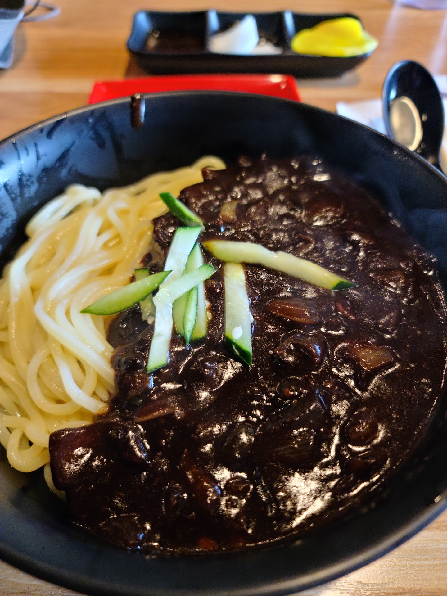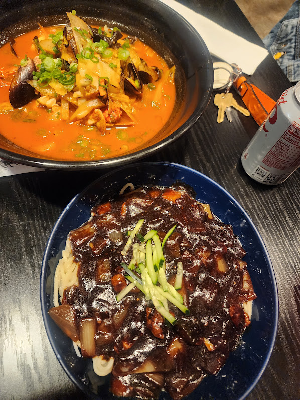 Ordered the jajangmyun aka black bean noodles priced around ~$11. Mixed feelings about this place as the jajangmyun does not seem to be their main staple, especially given the restaurant name of The ppong. Jjamppong or spicy seafood noodles seem to be THE dish to order...warning the spicy. But keep in mind, I am one of the rare Koreans who cannot handle spicy anywhere near the average level. I actually avoid it purposely. I would not recommend ordering the jjangmyun as it is only average...and I had many jajangmyuns in my lifetime...
