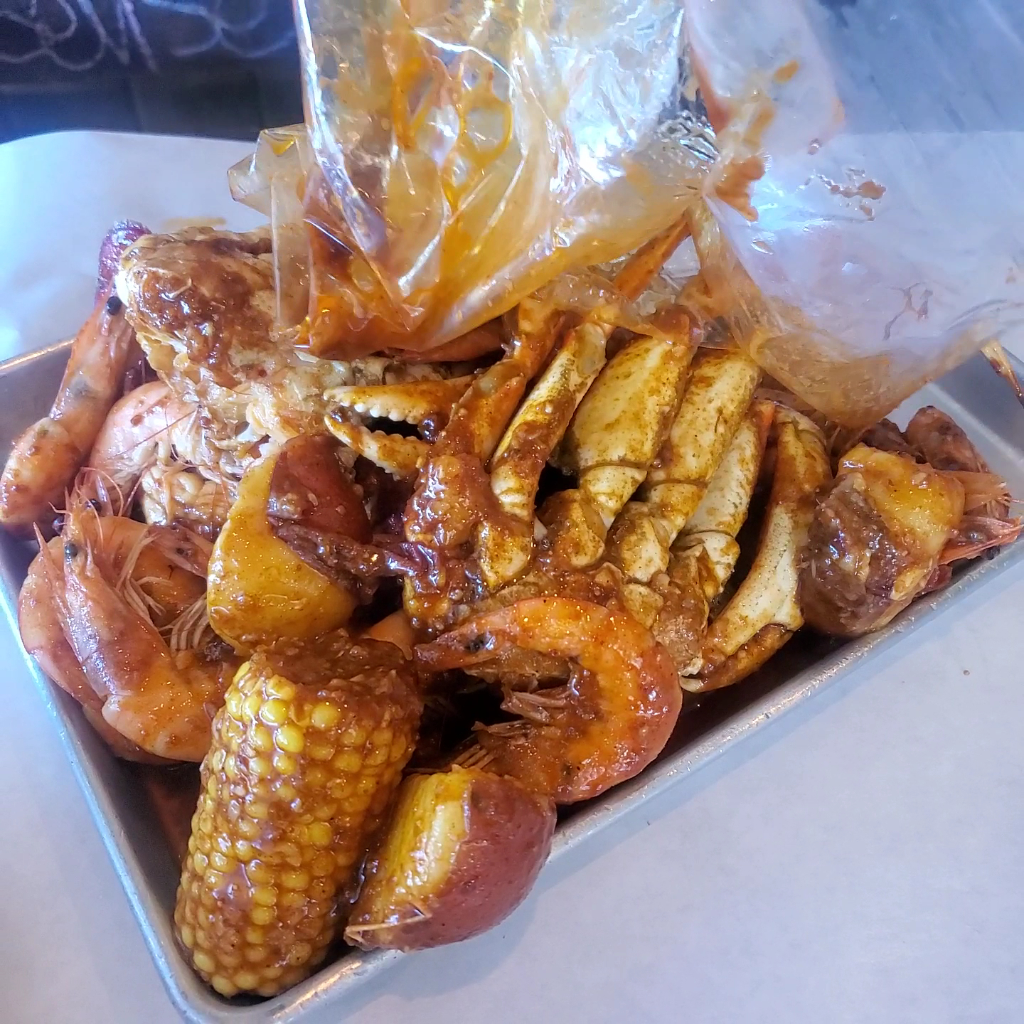 We recommend: Shrimp, 1 Lobster Tail, 2 Dungeness Crab, potatoes & corn with Mild Garlic Butter Sauce in 1 Bag. Shrimp, Crawfish, 2 Dungeness Crab, potatoes & corn with Mild Garlic Butter Sauce in 1 Bag. 3 Side's of Garlic Butter Sauces to dip Seafood in.
