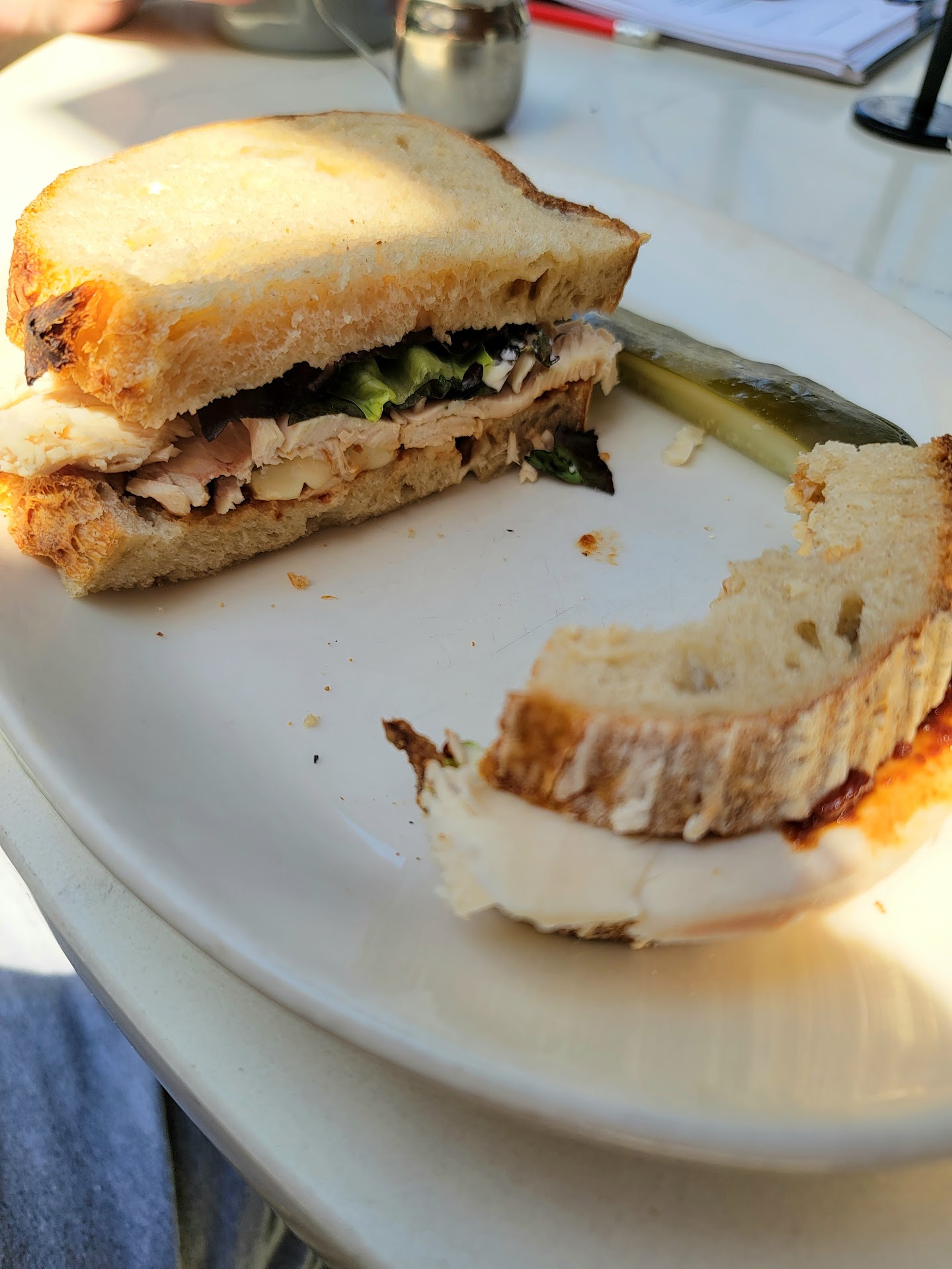 If you look at the sandwich in my photo, I want you to ask yourself: would I or anyone else, ever wake up hungry one day with the image of this sandwich in their minds and say "hmmm I'm hungry I think I'll head down to Sycamore Kitchen and get that $17.80 Turkey sandwich again" The answer is no. No one would. Bare plate with a wilted pickle too. And I tipped even tho it's a counter order.