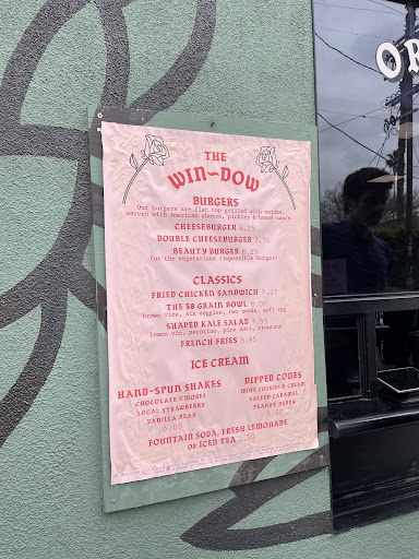 Read moreCame across the Win-dow by accident.. one day I was strolling down Sunset and I saw that the little corner they're at was having like a farmers market event on a Tuesday afternoon. Super glad I found this spot my whole family loves it.. my first attempt here was the chicken sandwich with some fries got the aioli on the side and I got they're green sauce (forgot what it's called) since I'm a total sauce person. Let me tell y'all something this sandwich didn't need any sauces added! Incredible flavors on the chicken sandwich. Nice portion size on the chicken it's basically coming out the super soft bun. Incredible slaw! Refreshing, salty, soft, crispy sandwich is beautifully complimented by that slaw! I've gone back about 3 times since that first try and I've had everything there and nothing falls short of great! I would argue that Win-Dow has the best smash burger AND fries in LA! Make sure you get their dipped cone after you have your meal. YOU WON'T REGRET IT! Also if you want to skip the ice cream but you want something sweet get one of their shakes! Honestly! You're gonna like anything you get here.. Definitely an LA must try spot! Look my only complaint is that there's no tables or chairs to enjoy the meal also because if you're gonna have your food there it can be a little crazy since there is all sorts of things going on in that corner, but...