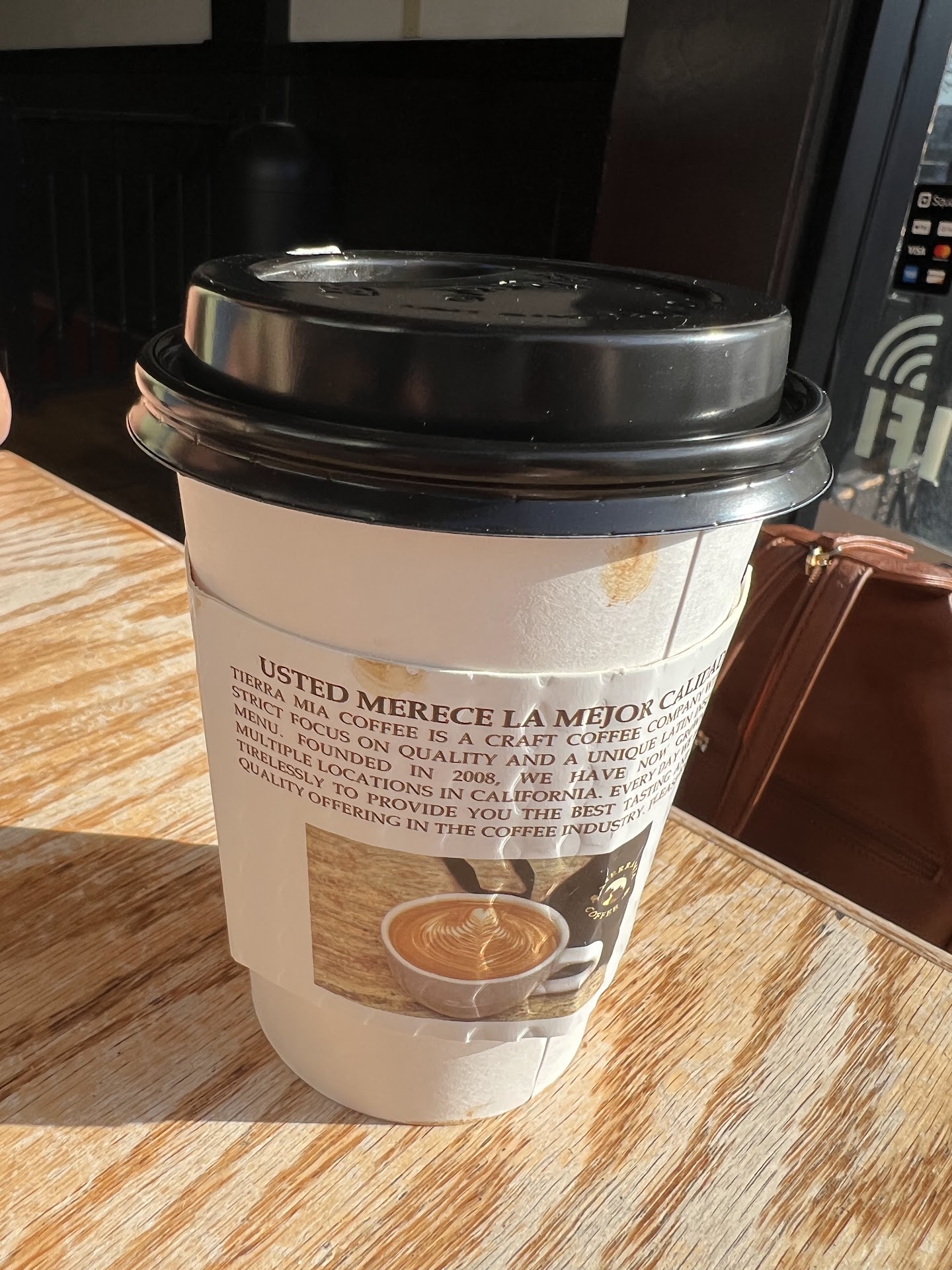 Read moreI make my own bulletproof coffee/tea at home just about everyday so I rarely go out for coffee these days but when I do it has to be planned and it has to be AMAZING :P I passed by Tierra Mia Coffee before and it's almost impossible to find parking. I scored a parking spot in front although I had to parallel park, the meter costs a quarter for 15 minutes. I knew I wanted something really strong and decided to get the cafecito Cubano con leche. I wanted the small size but asked how many shots it had. The barista said it was one shot but theirs was two ounces so it was equivalent to two shots. OMG, so good, strong, and perfectly sweetened. I didn't even have to ask !!! I picked up a homemade granola bar to take with us and when my kids and I tried it later, it was amazing as well... I texted one of my friends immediately about my latest find and my childhood friend and she laughed, growing up I went to a dental clinic on Alvarado and it...