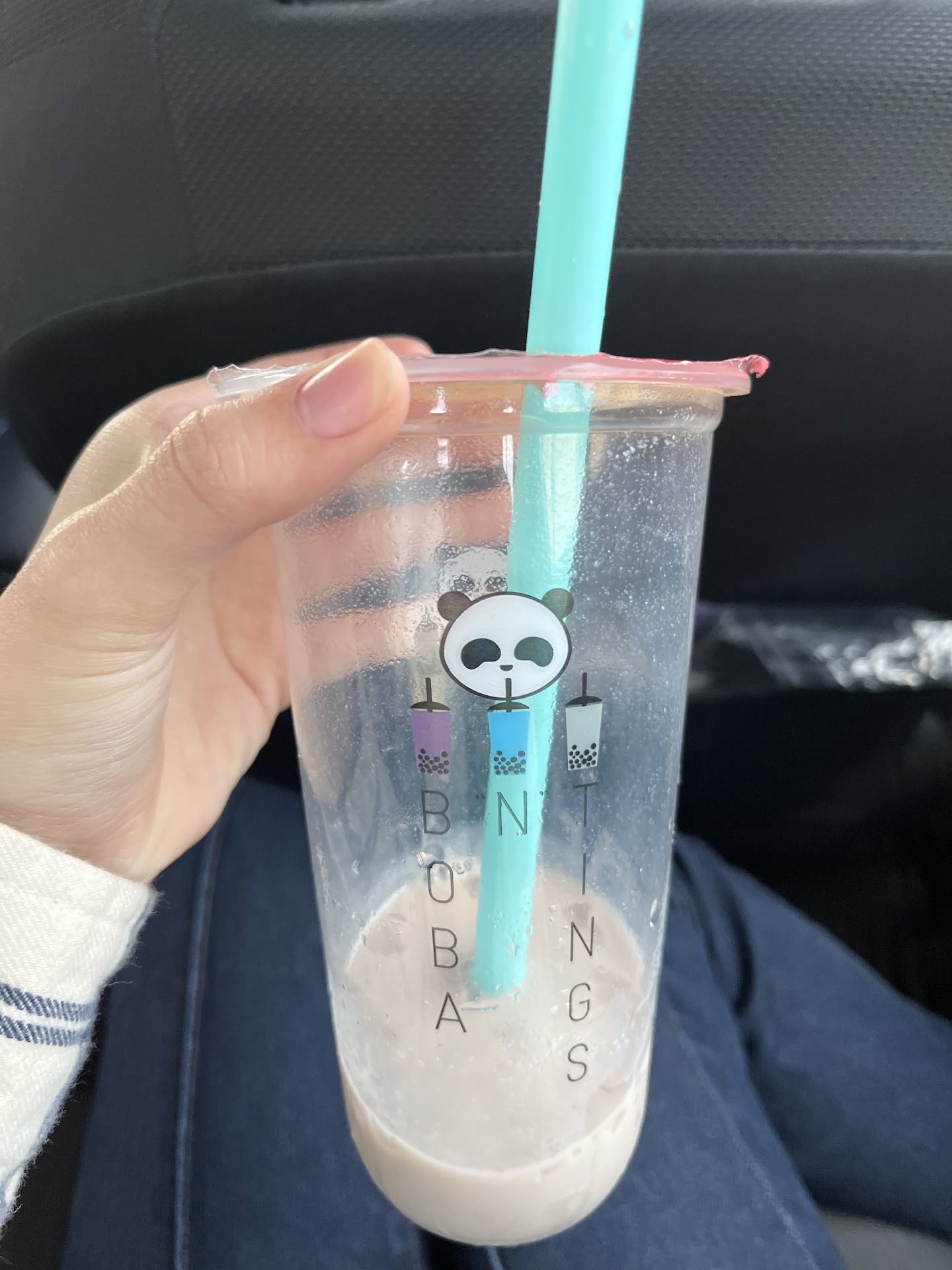 Read moreI only went to this place because it was near where I live and it seemed really empty, but they had a large selection of drink options with milk tea flavors that i had never seen in other boba places like chocolate, hazelnut, or blueberry (i had forgot to take a picture before i drank it but the blueberry milk tea is the picture 😭). The interior was nice, it was filled with anime and comic book Funko pops/ figurines, Sanrio plushies, and many brand name T shirts all for purchase. There was also a FREE functioning pac-man machine! Overall a pretty nice and underrated place that i could see being...