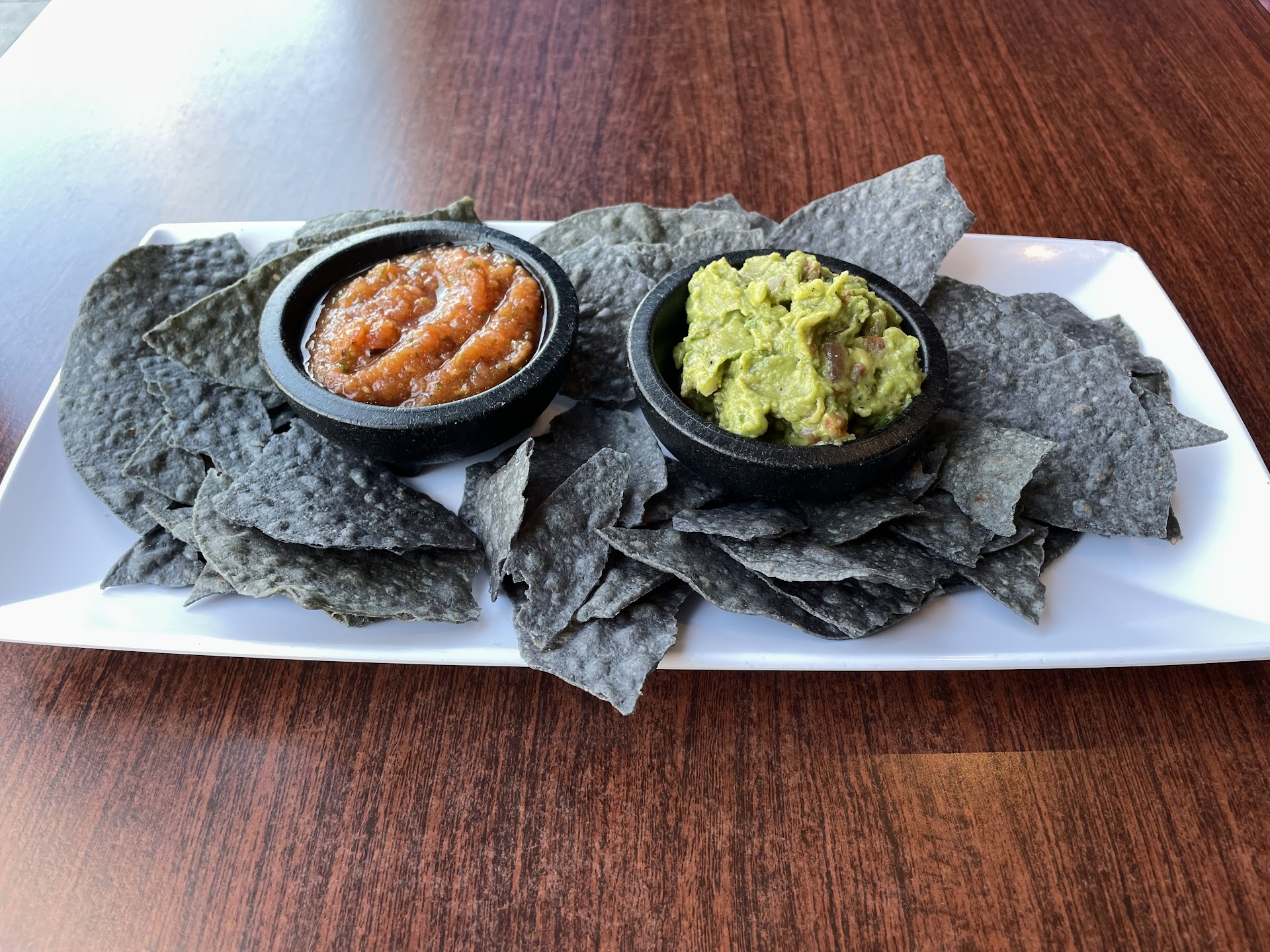 Blue corn chips with guacamole and salsa: I’m not used to blue corn chips, so this was a nice touch. Plus the salsa had a good spicy kick, and the guacamole was very tasty.