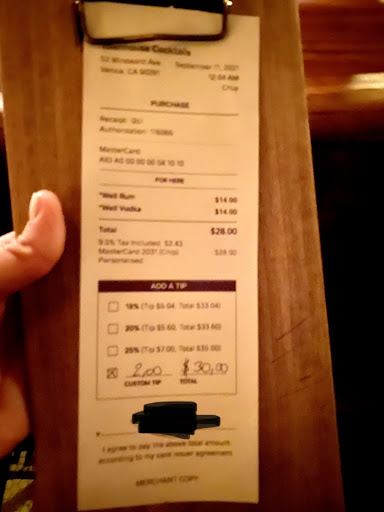 The oldest bar in Venice, CA. Caesar Menotti opened this bar in 1915. During Prohibition, the upstairs was a grocery store, which was a front for the bar in the basement. Today, to reach the Del Monte Speakeasy, you can walk down a wide flight of stairs, instead of accessing a trap door. For engaging stories, drop by Townhouse soon after they open, you may be blessed by one of the best storytelling bartenders on the West Coast, George. His smile will draw you in, his stories will keep your butt glued to the barstool. Once night arrives, the booths fill up, the constant clacking of balls from the one pool table merge with the clinking of cocktail glasses. Never gets too rowdy, even when there's a Burlesque show down below. Maintained here is a mood of mellow. Added bonus is the extra spacious bathroom, which rarely has a long wait. A variety of entertainment options here besides Burlesque, including live bands, DJs spinning, dancing, stand up comedy. Visiting this Los Angeles landmark is a must see. You will feel like you slipped back into the...