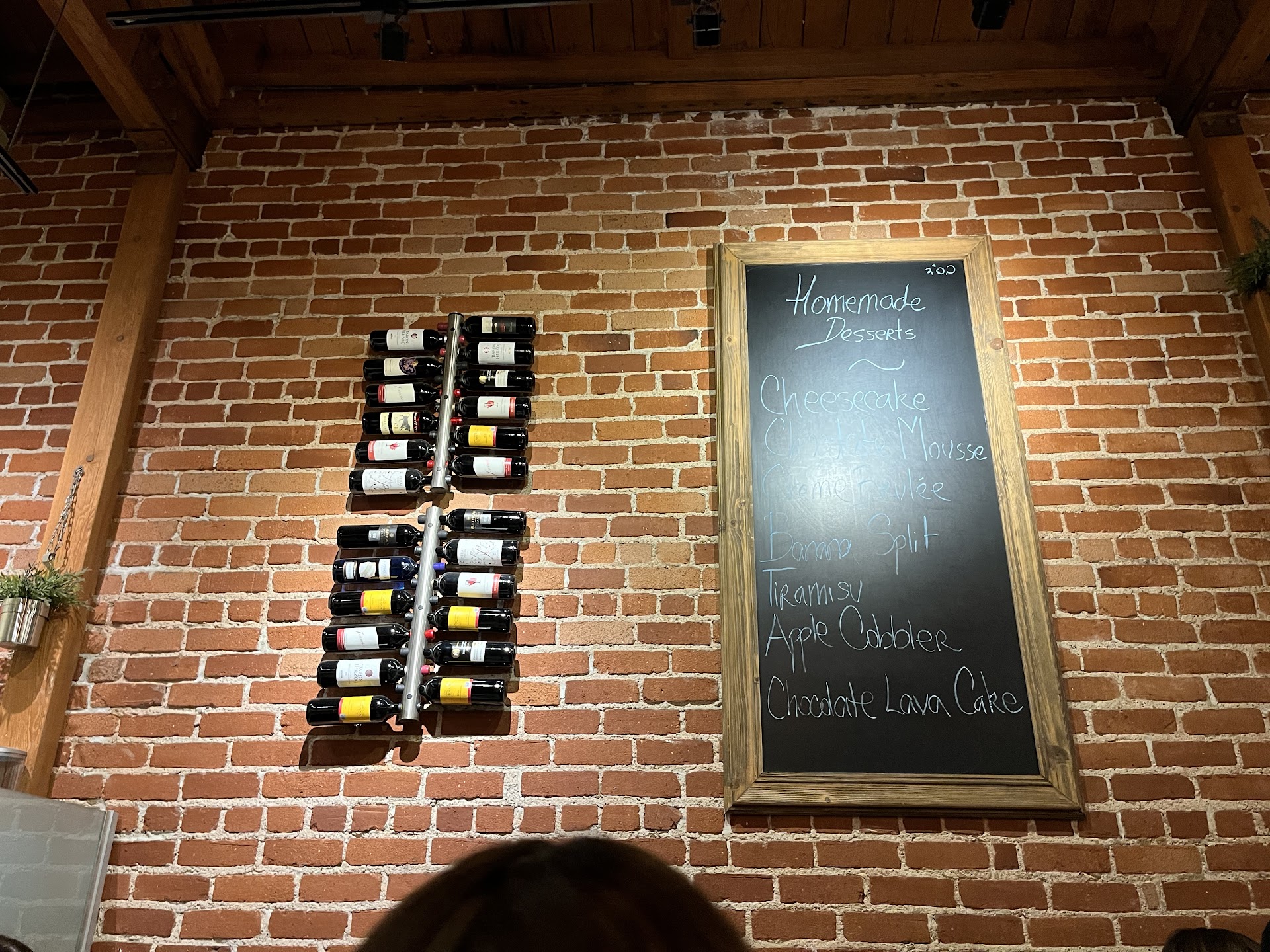Apps: Artichoke Dip, Nachos Soup: French Onion Soup Entree: Shitaki Rigatoni and any of the pizzas Wine: Ramon Cordova Rioja Dessert: Crème Boule or Chocolate Lava