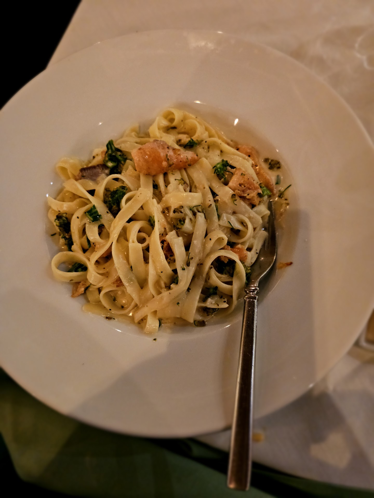 We ordered lots of stuff. The Shitaki Rigatoni was the fan favourite. They do a great job on the French onion soup, as you would expect from a fine French establishment. I would stay away from the Gnocchi. The pizza was unique and definitely worth a try.