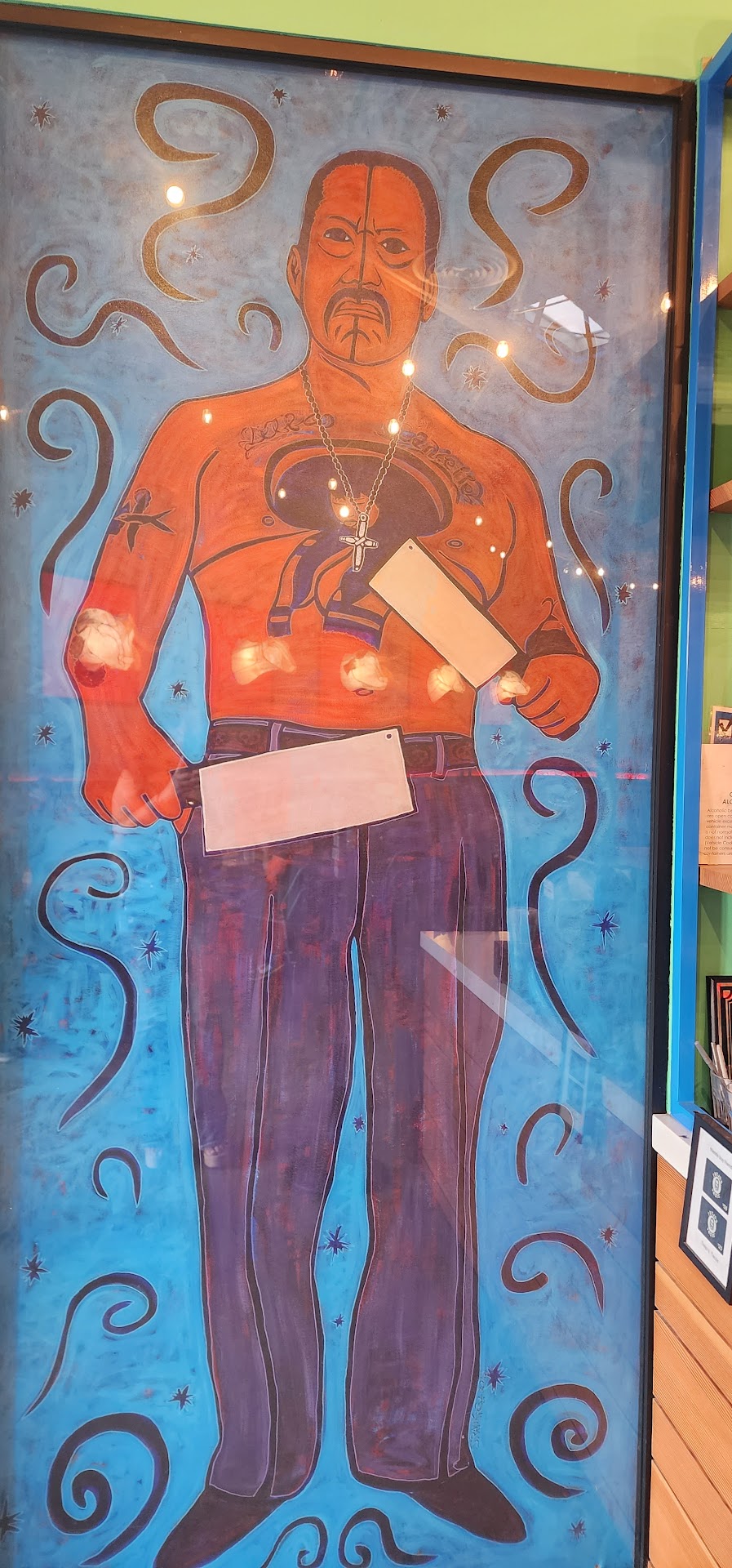 The draw here is the use of name of actor Danny Trejo. His face is used on the menus and there is branded merchandise and art throughout. There is interesting decor of art celebrating family and Hispanic culture, a small patio and seating. The cocktail bar occupies most of the space.